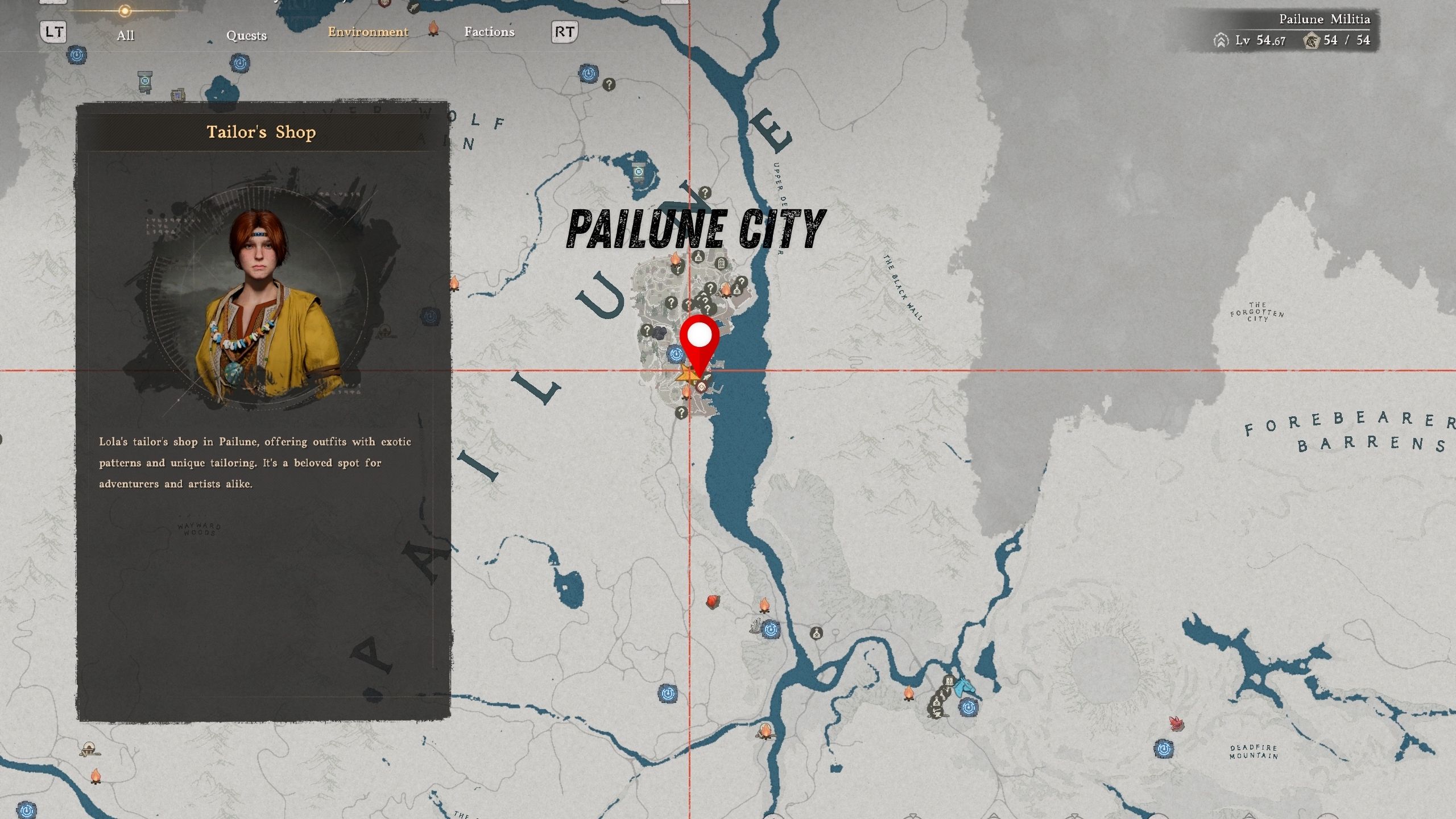 You can find Lola’s tailor shop at the south end of Pailune City. She sells a variety of armor and outfits, like Grey Wolf boots and cloaks. There’s also a Grey Wolf chest piece available, but you’ll need to fully raise her trust level before you can buy it.