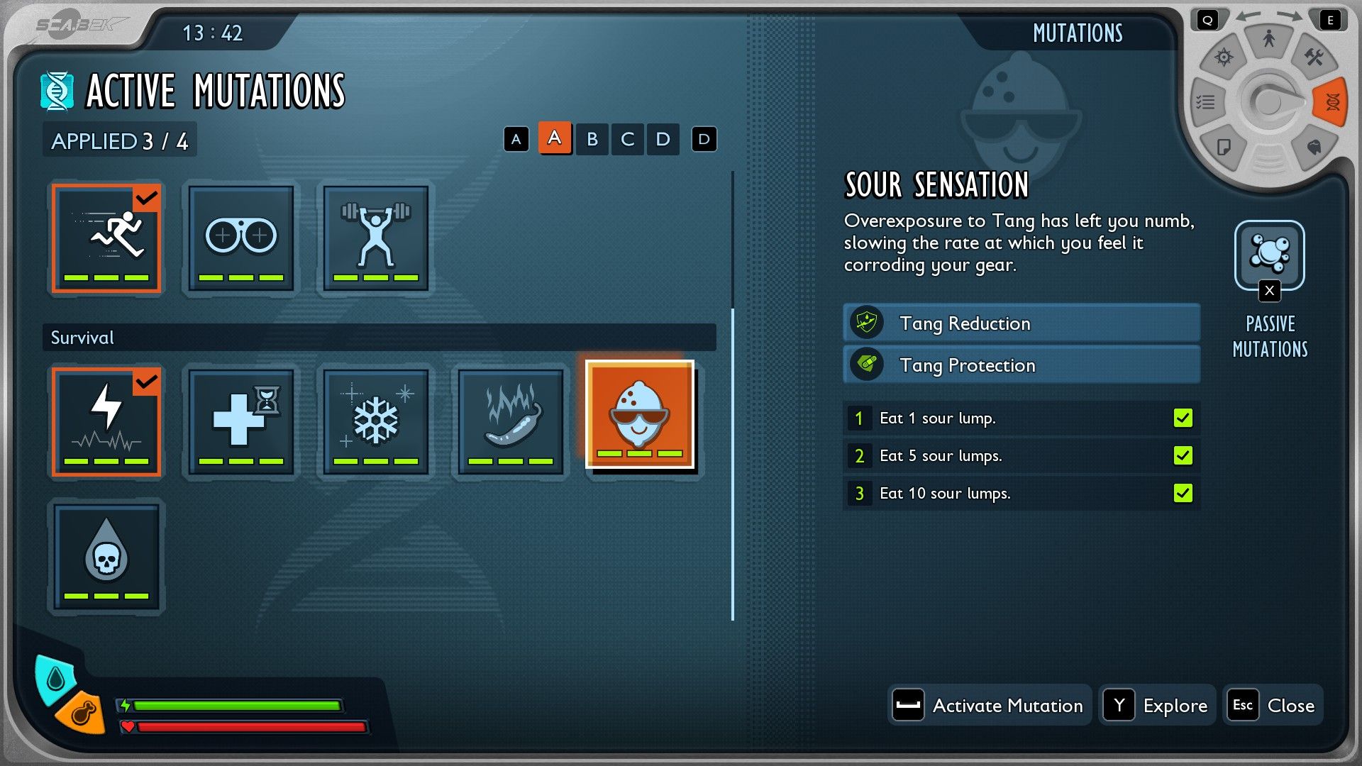 You unlock the Sour Sensation mutation by eating Sour Lumps. Eating 10 of them will fully upgrade the mutation, giving you these benefits while it’s active: