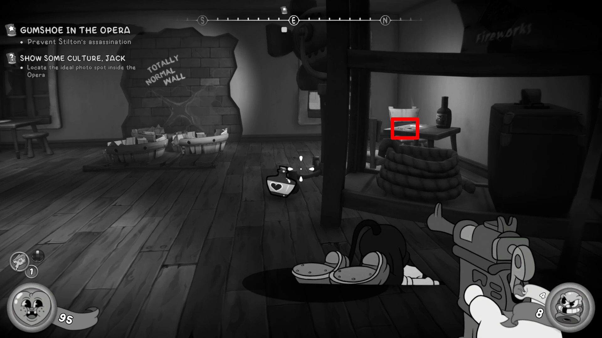 Okay, so I finally figured out where to take that photo for the ‘Show Some Culture, Jack’ side job! It’s in the opera box just past the collapsed hallway. Once I’ve got the shot, I need to head back to the P.I. Office and chat with Tammy to finish it up and get 100 coins. And get this – you can spend those coins at Soup and Nuts, the shop right next to our office! They sell all sorts of useful stuff like ammo and equipment, plus cool collectibles like newspapers and comics. I’m definitely going to check their stock after every case – you never know what you’ll find!