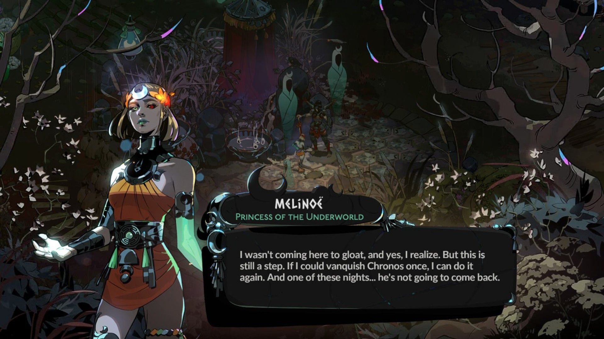 Unlike others, Melinoë grew up with everyone believing in her potential. From the start, Hecate trained her for a specific, important mission. She received guidance from powerful figures like Selene, Artemis, Medea, and Circe, all of whom were confident in her ability to overcome Chronos. While some, like Nemesis, had their doubts, most around her expected great things from her.