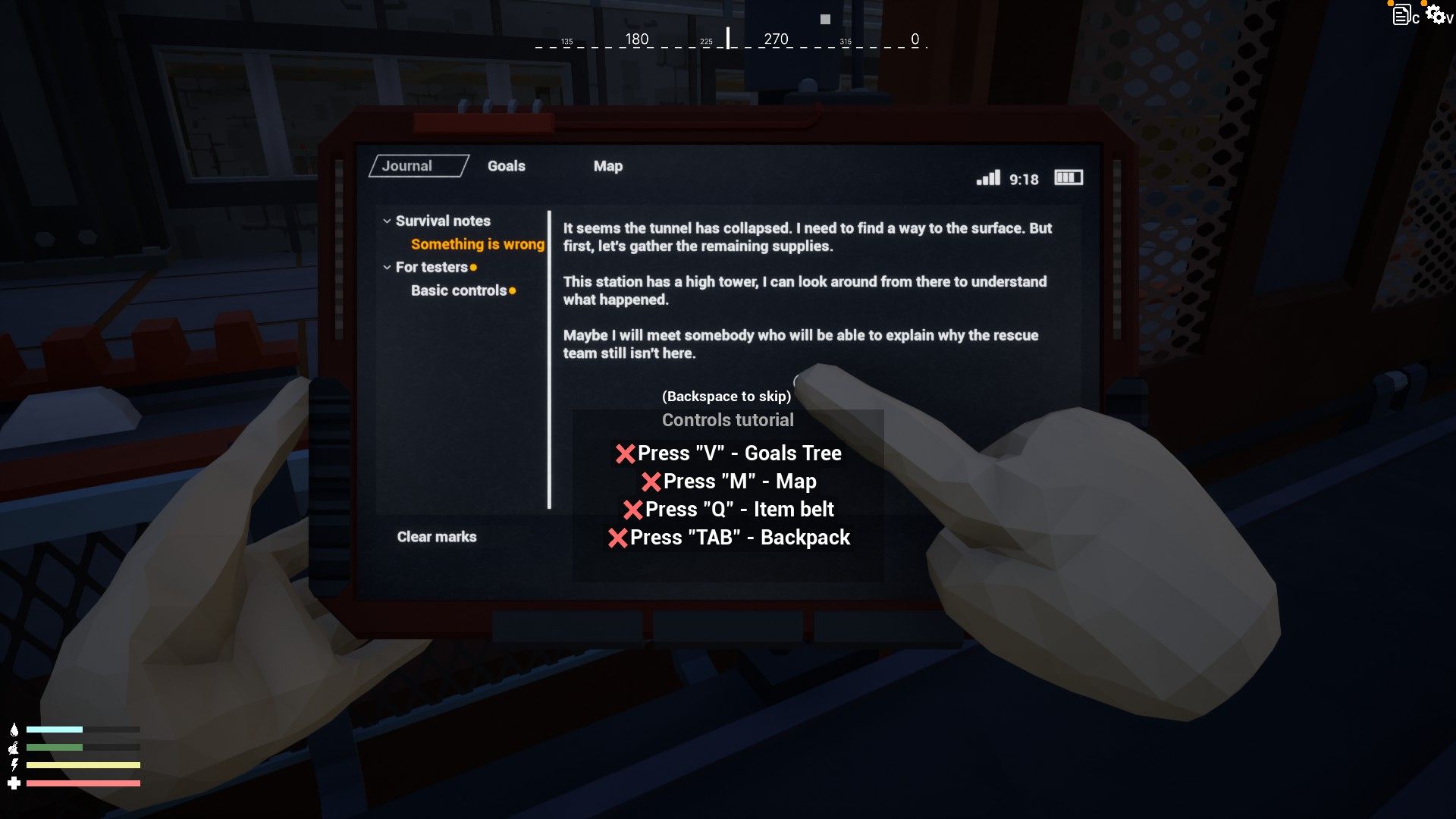 These tasks were as straightforward as choosing what to wear, making a tool like an axe, and determining how to heat water safely for drinking. This realization led me to acknowledge that my character would require various meters to monitor, such as health, stamina, thirst, and hunger, to survive in the world of Trainfort.