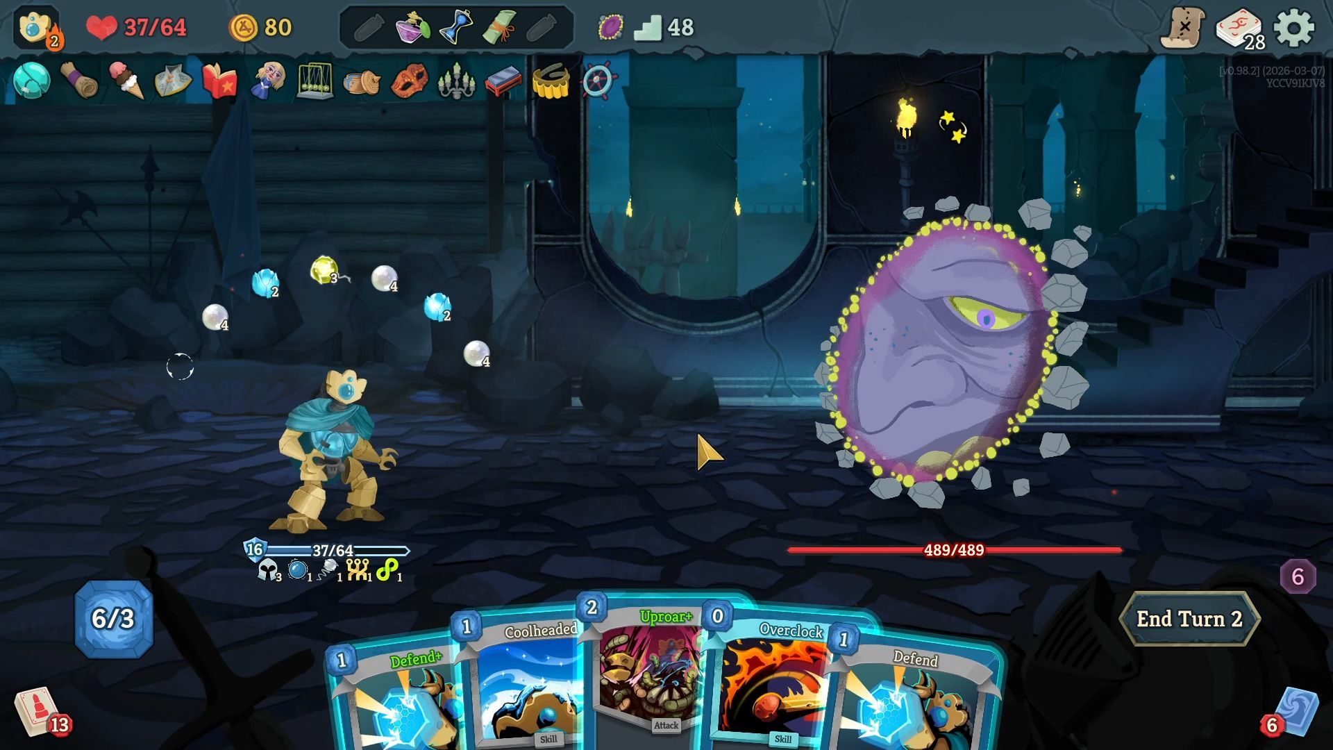 In Spire, expect to die frequently. You’ll fall to regular enemies, unpredictable events, and especially the powerful bosses waiting at the end of each Act. It’s a game about learning through repeated attempts.