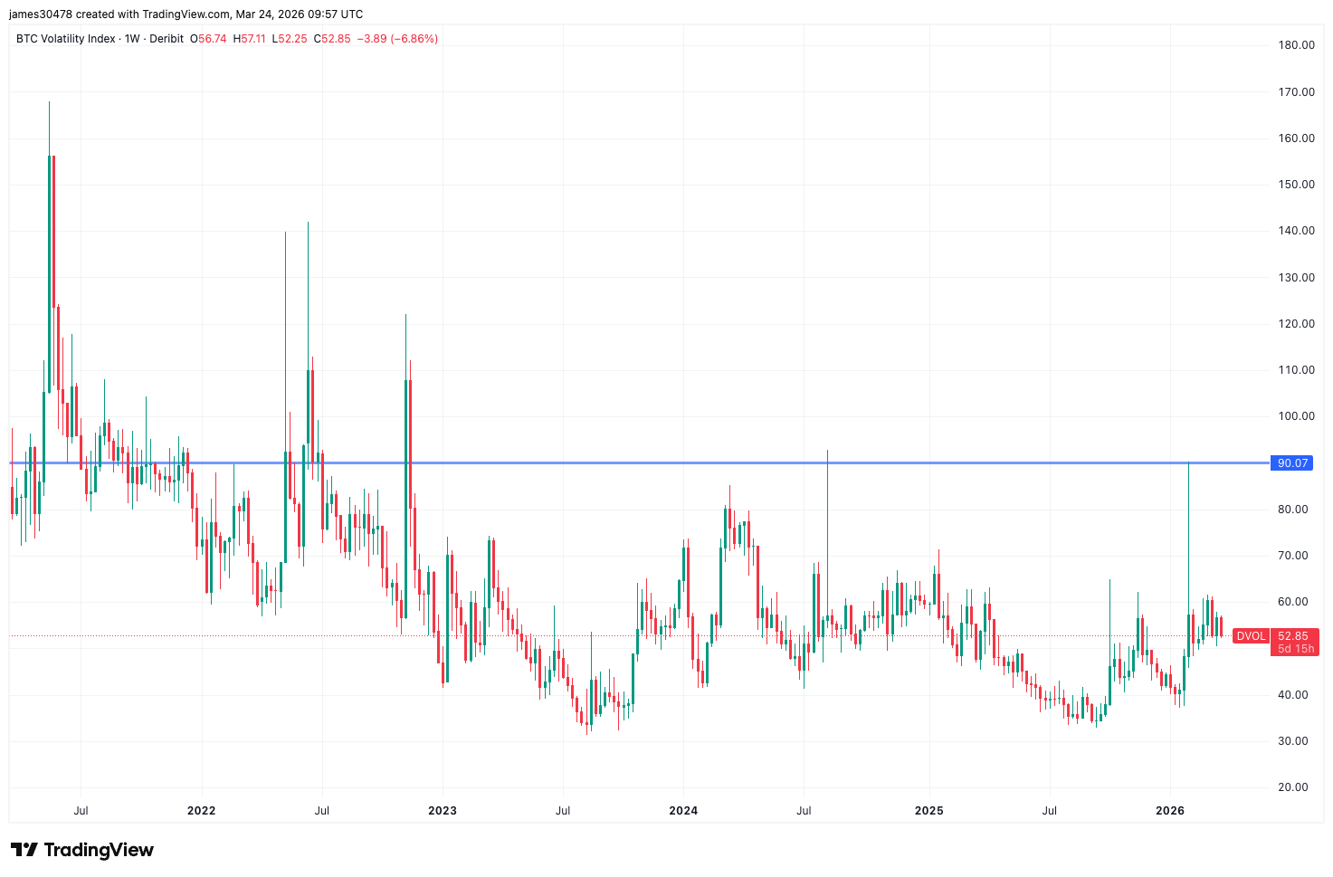 Remember last month, when Bitcoin took a tumble? Panic set in, folks scrambled for options like rats deserting a sinking ship, and DVOL and BVIV went through the roof, hitting 90% and beyond. Sound familiar? It’s like deja vu all over again, just like August 2024 when prices hit the skids near $50,000, or November 2022 when FTX went belly up and fear reigned supreme, sending Bitcoin below $20,000.
