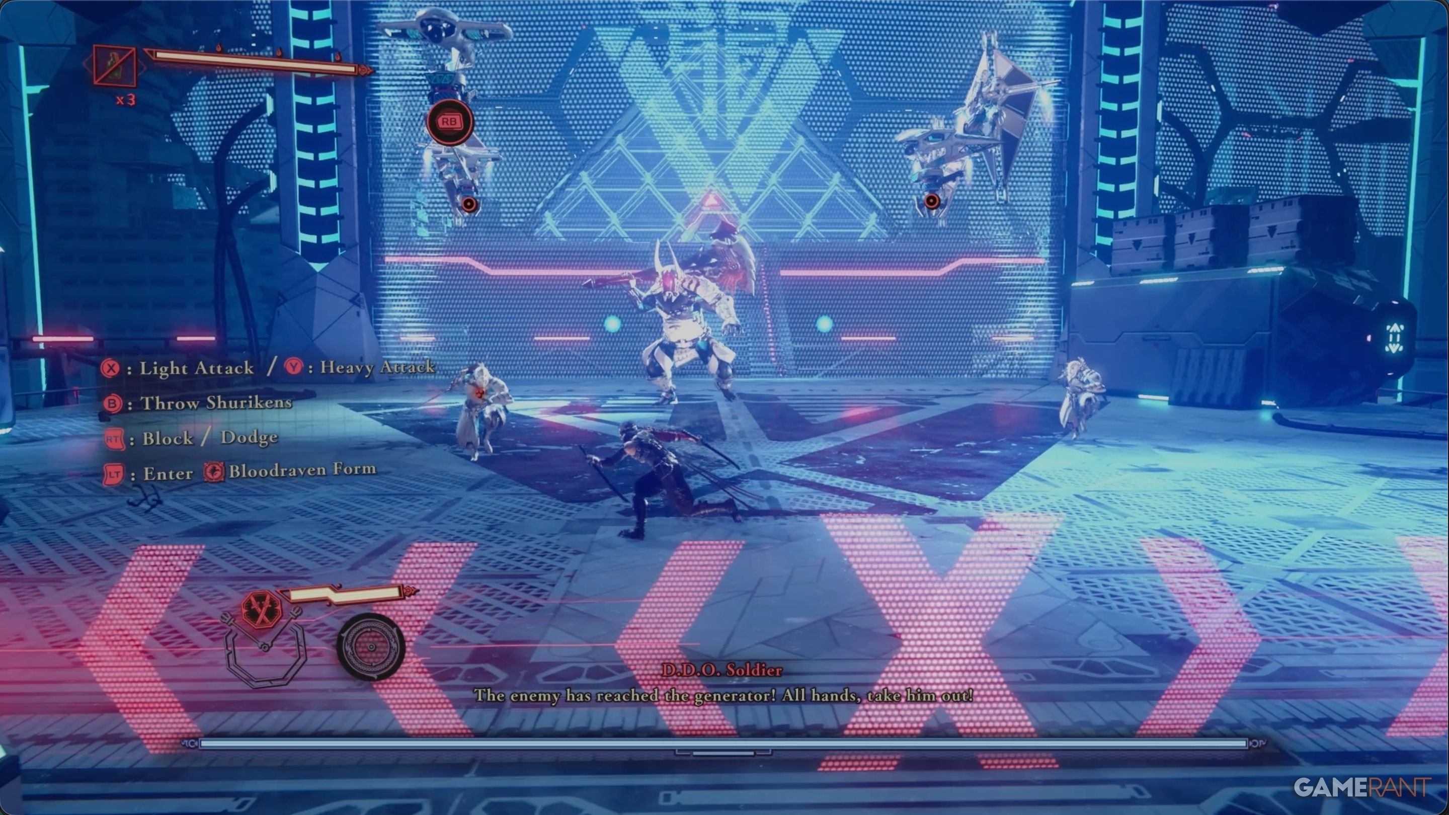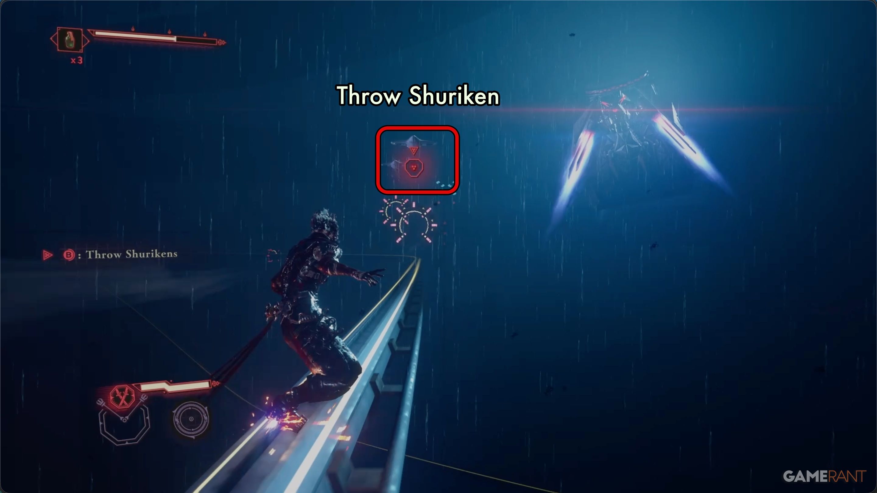 Keep an eye out for small drones that drop hazards onto the track. You can destroy them using Shurikens (B on Xbox, Circle on PlayStation), or simply jump over the obstacles they create.