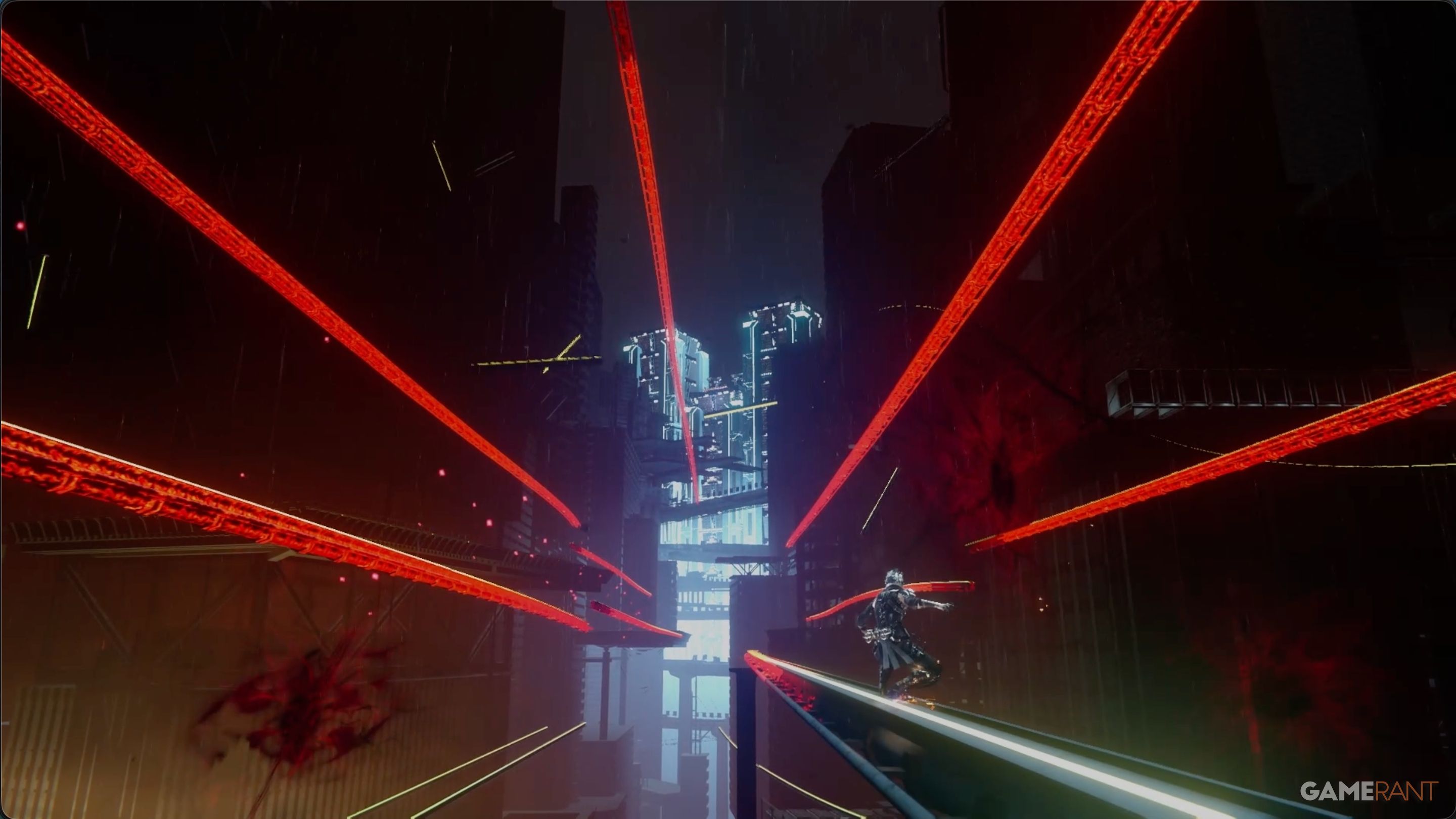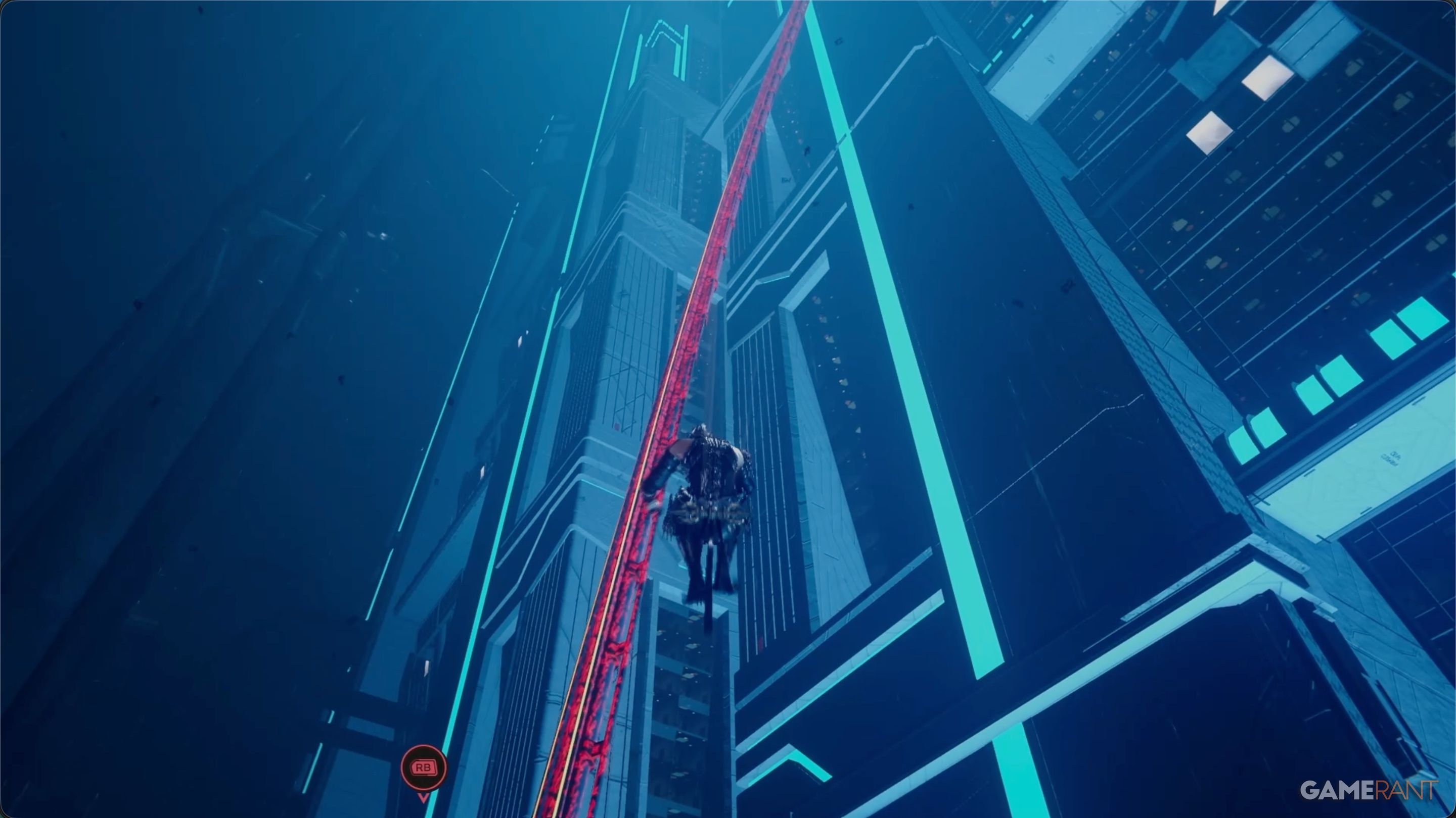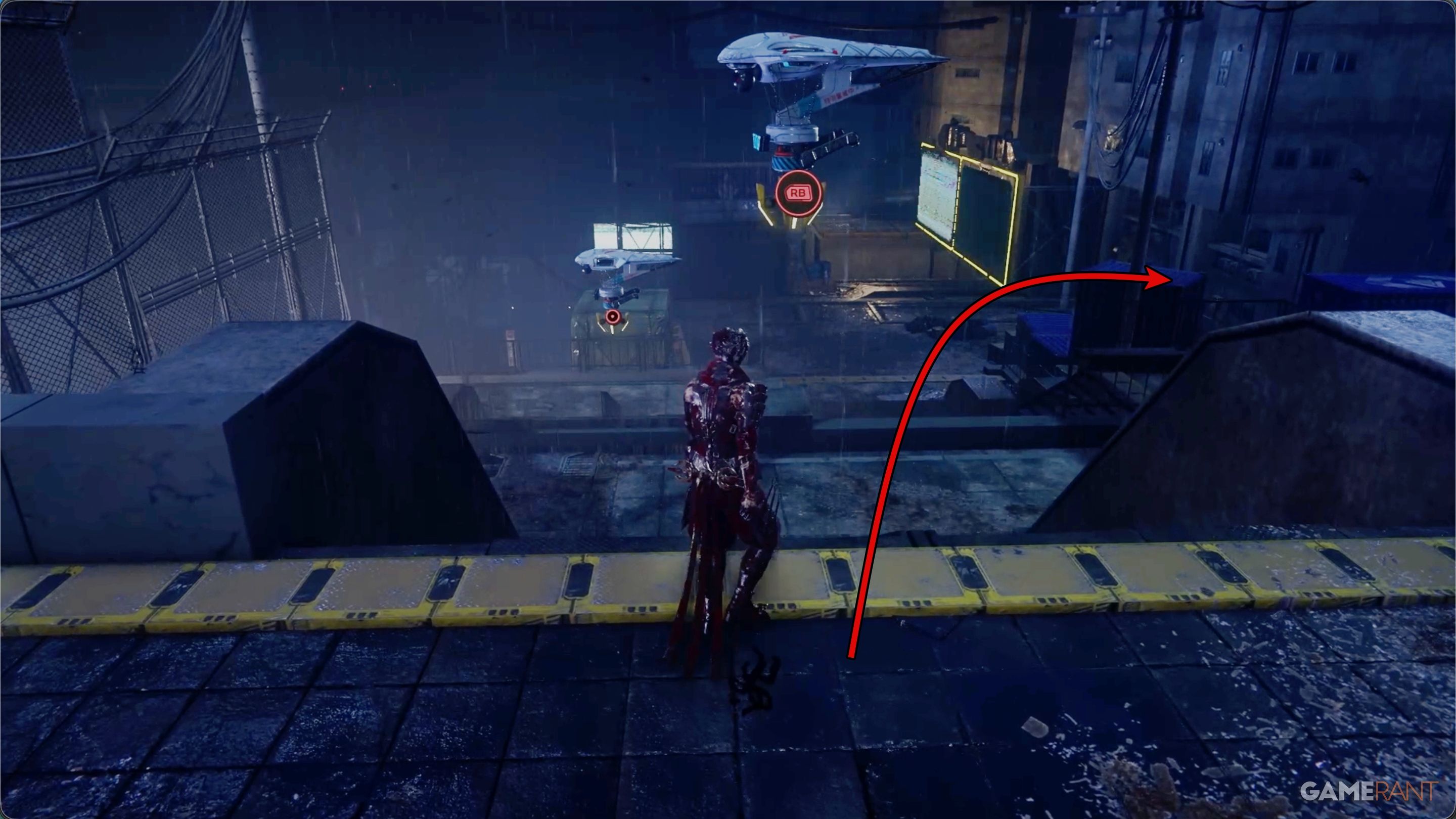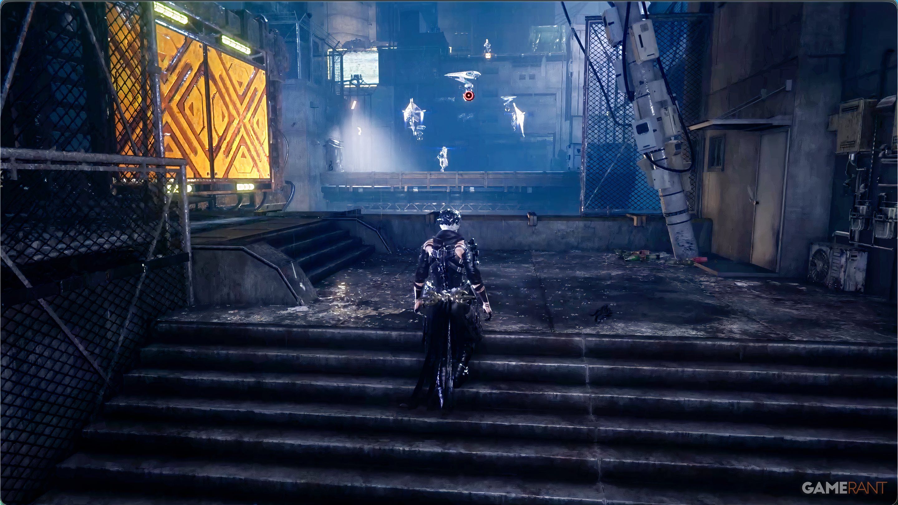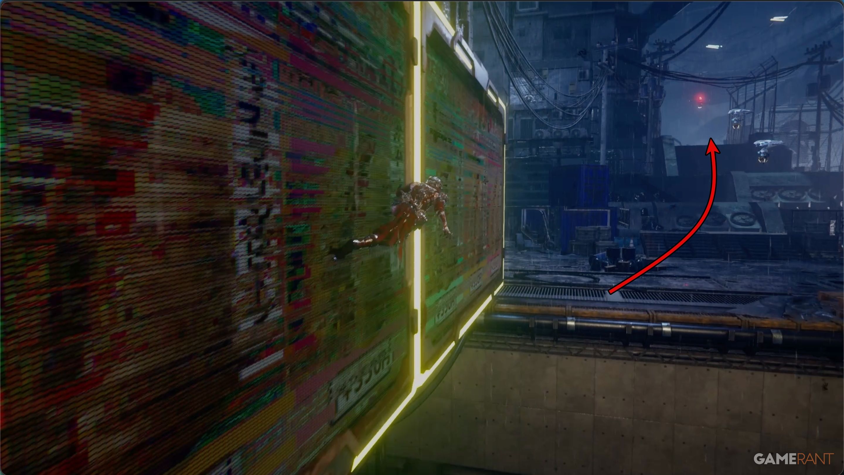After exiting the first DarkNest Terminal, you’ll face a series of battles where you can start grappling onto combat drones. This fight happens in a large, multi-level area with both rooftop and ground combat. Keep an eye out for three chests hidden throughout the area.