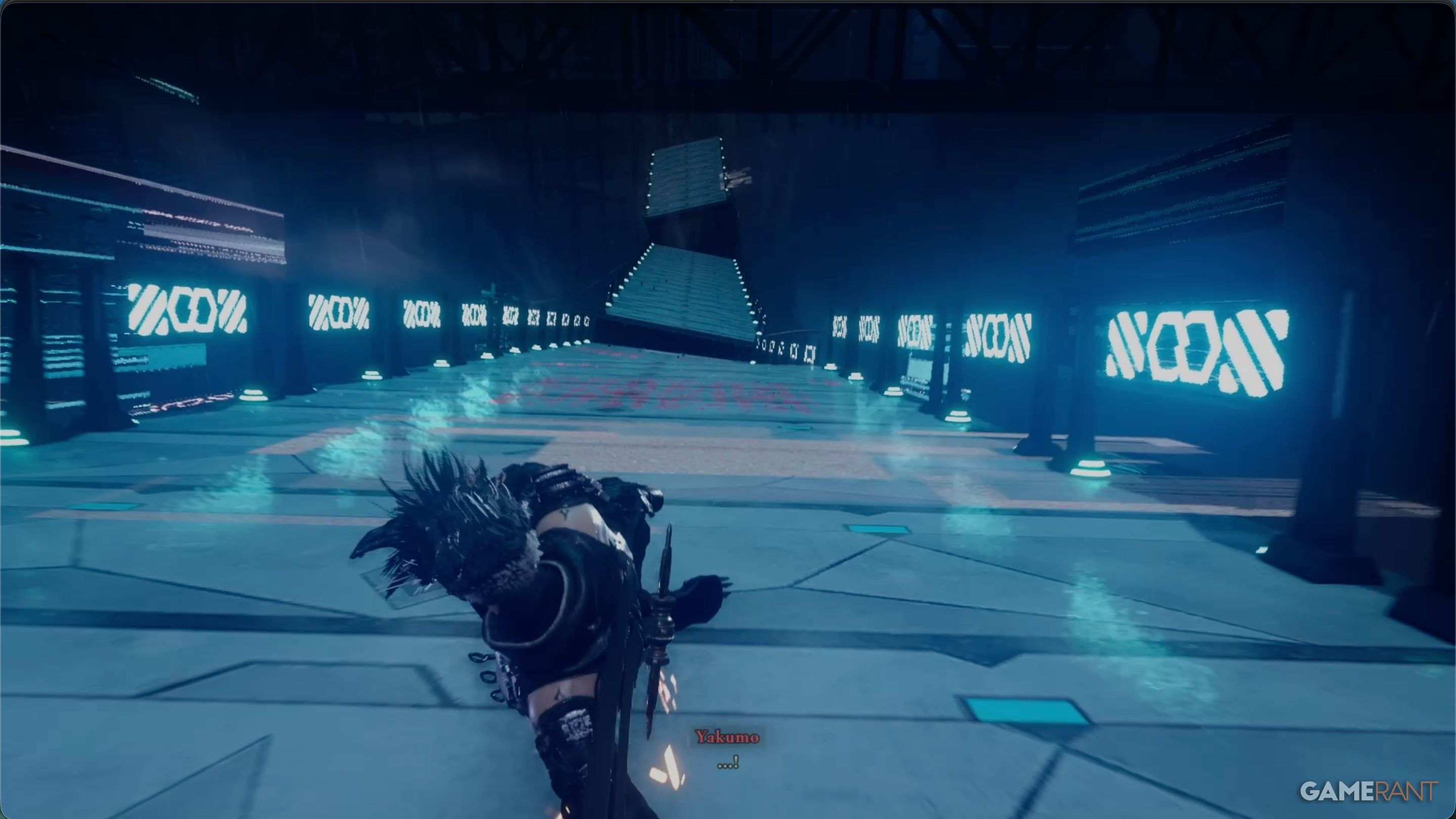 Once you’ve finished the lengthy battle area – a mostly flat, extended platform – a large, red and black gate will open. Go through it, and you’ll reach the second DarkNest Terminal and encounter Tyran’s Raven.