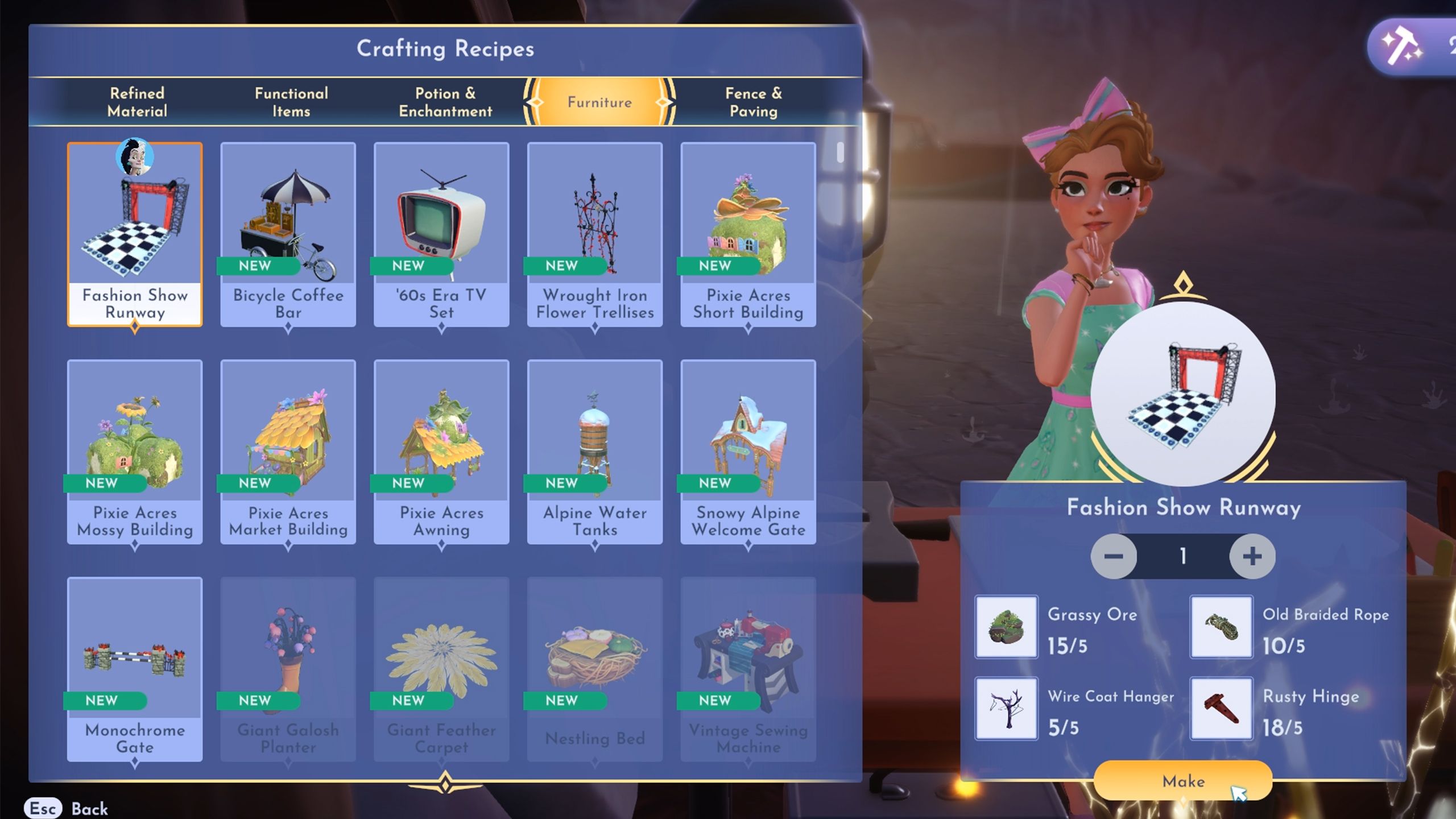 Find the broken hat and have Mirabel repair it. Then, let Cruella know the competition is still happening now that the hat is fixed. Once you’ve chosen Dreamers as the judge, set up the fashion show runway at Wishblossom Ranch and put on a hat to begin!