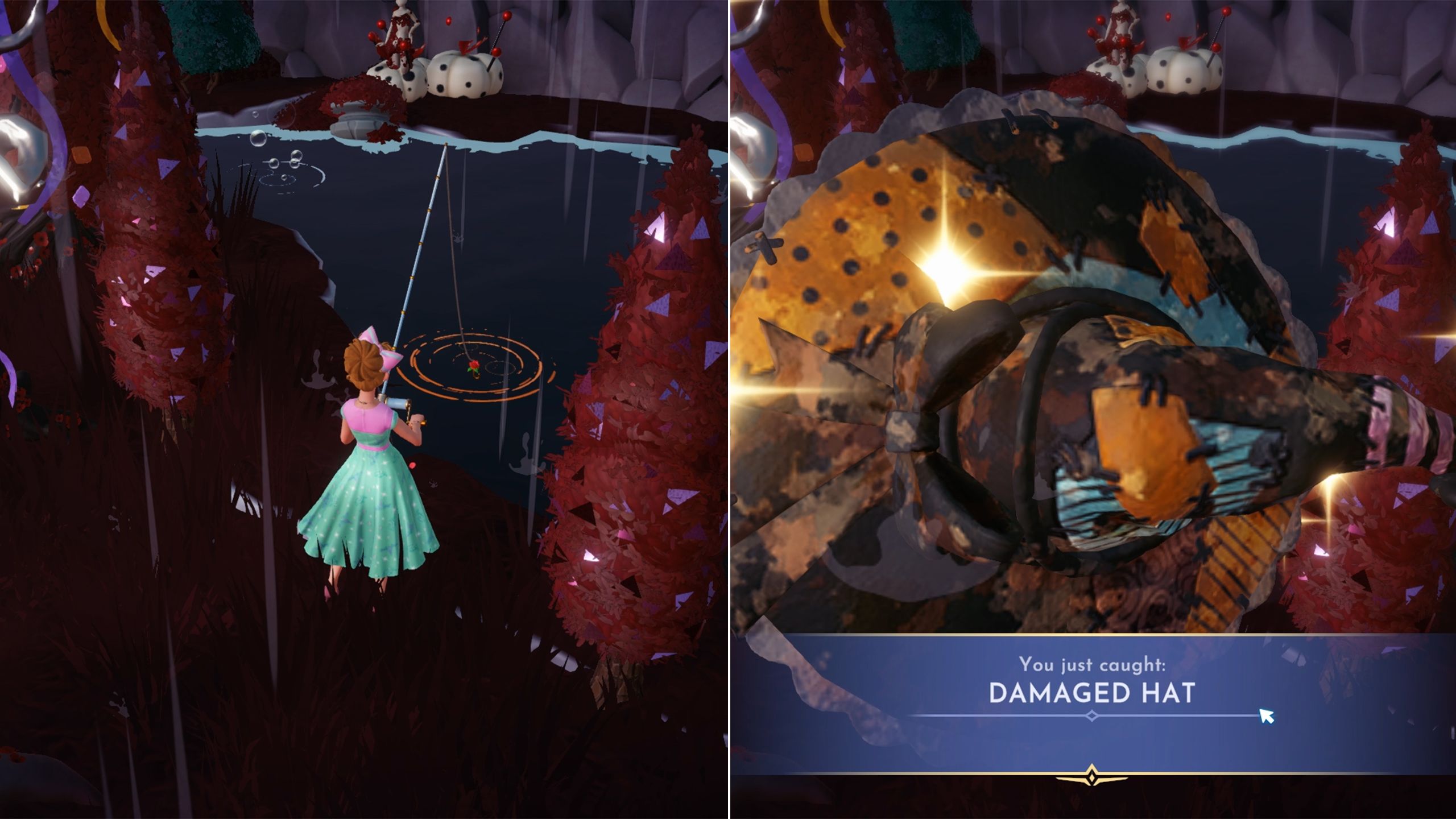 When the players return to Snow White’s hut, they discover their hat is gone. They’ll need to find it by fishing it out of the Fortress in DDV – but it will be damaged.