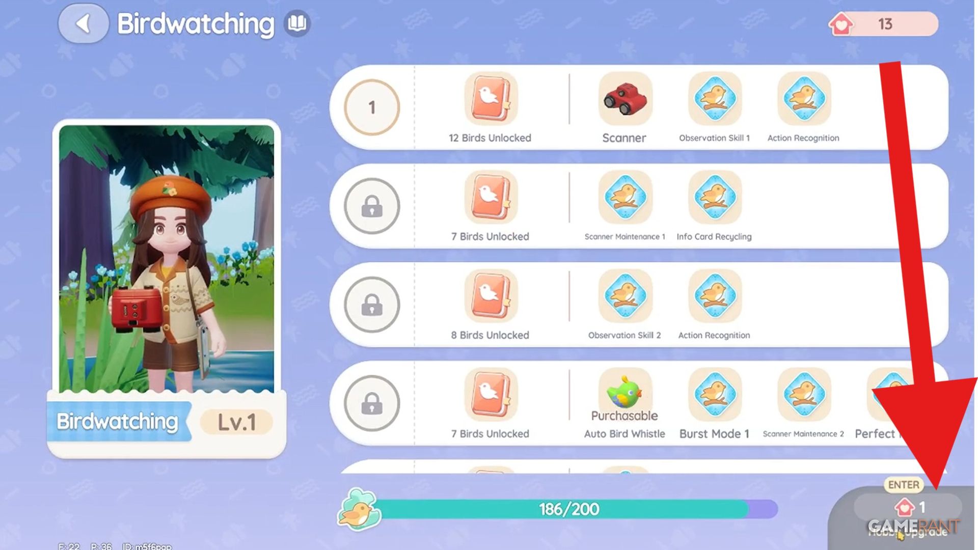 You can earn Hobby Upgrade Tickets by increasing your Guild rank and finishing hobby-related Collection challenges. These tickets let you advance to level two in the Hobbies menu. Reaching level two in Birdwatching, for example, unlocks new birds to discover and allows you to recycle Info Cards with Bailey J.