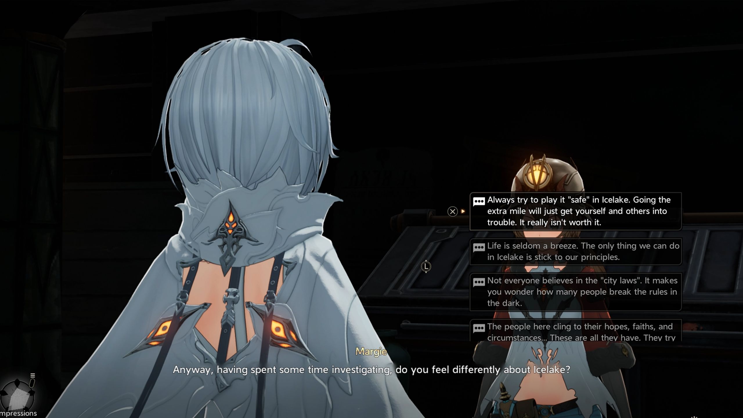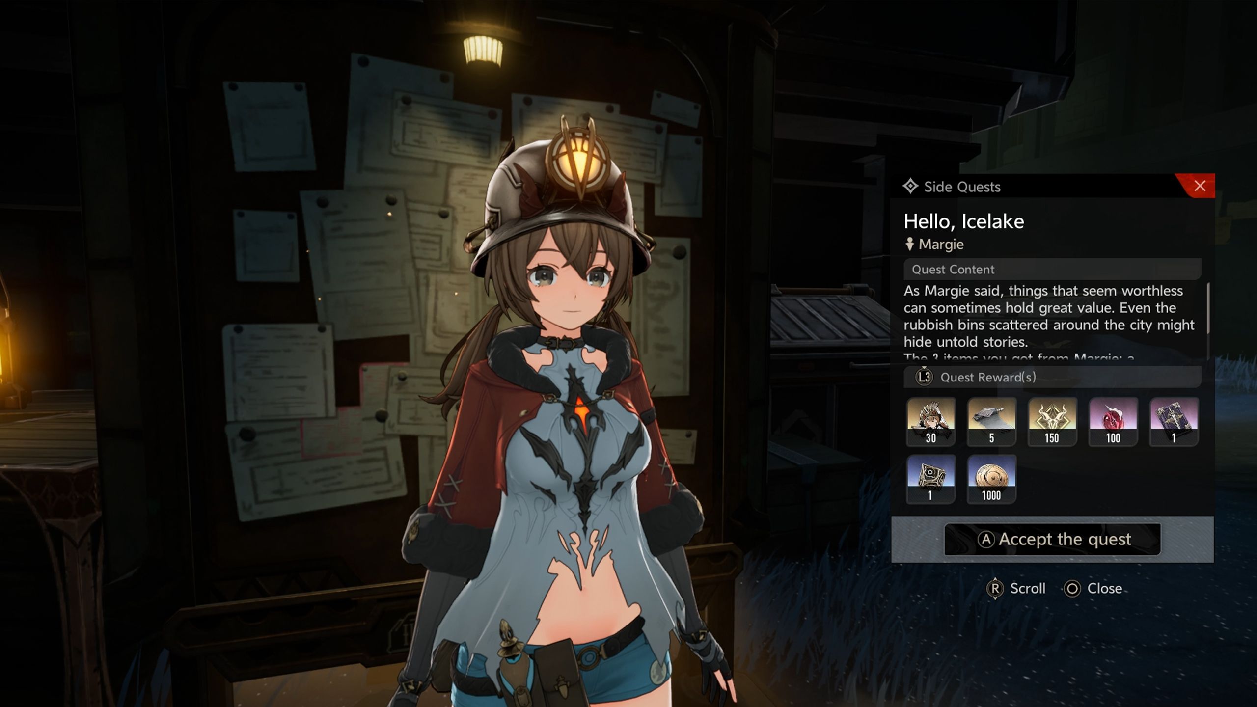 To finish the “Hello, Icelake” quest, complete all three item-related quests and then speak to Margie. She’ll ask about life in Icelake, and your answer will slightly improve your reputation with the Phoxhunters.