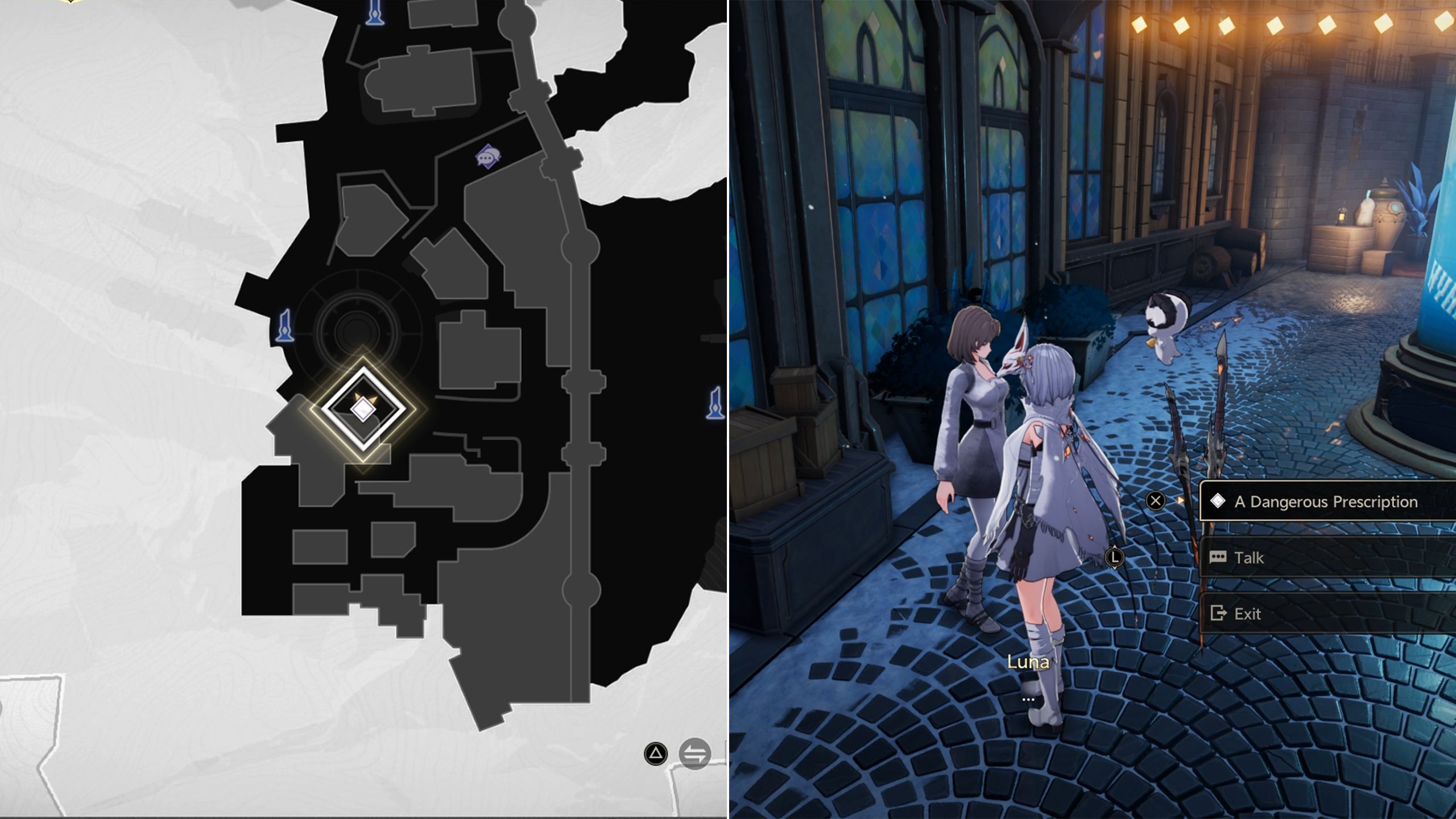 To start the investigation into the dangerous DNA prescription, go to the Asphodel and trigger the cutscene by the entrance. You’ll find Luna being harassed by two people, and you’ll need to defeat them before you can talk to her.