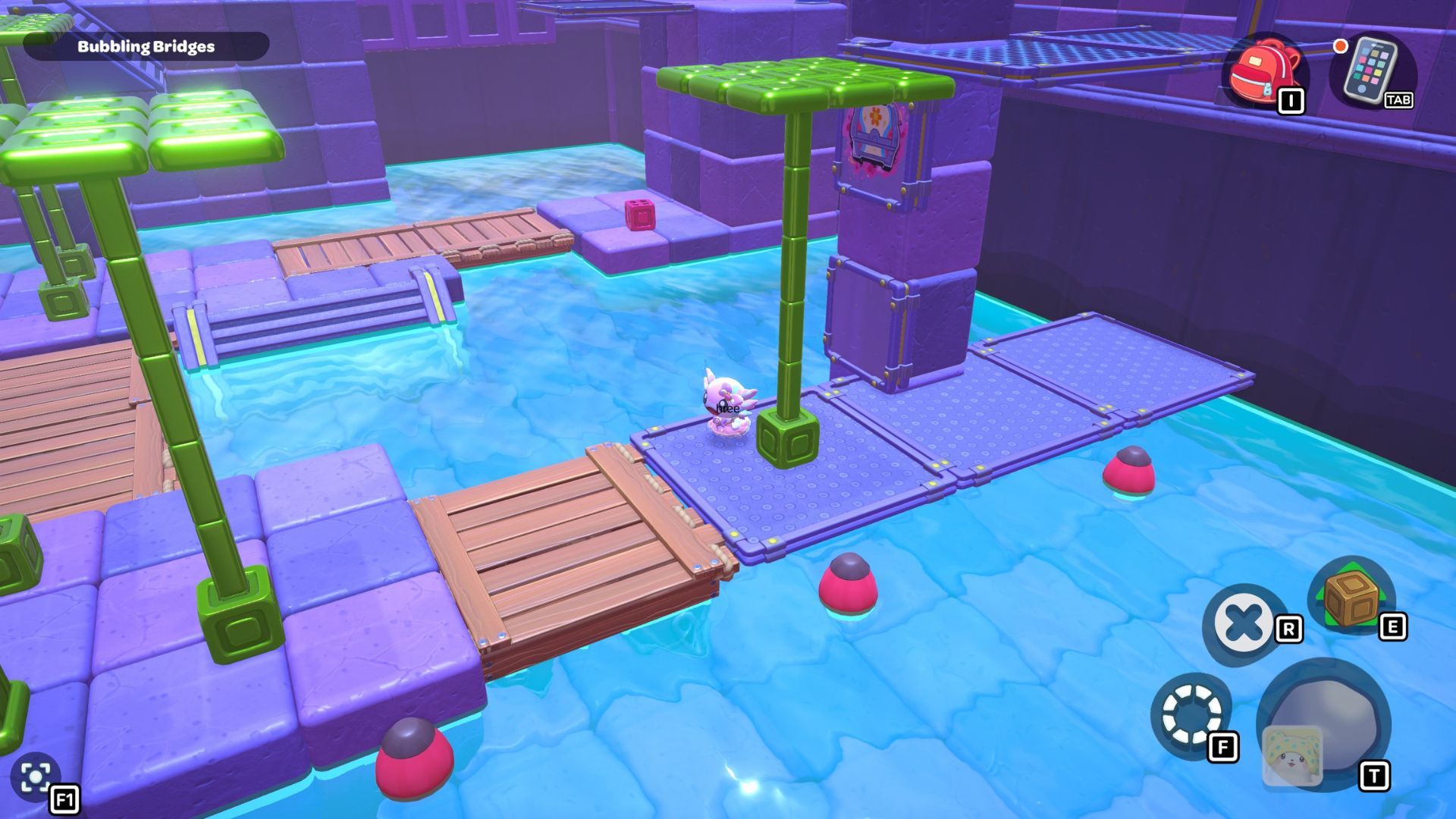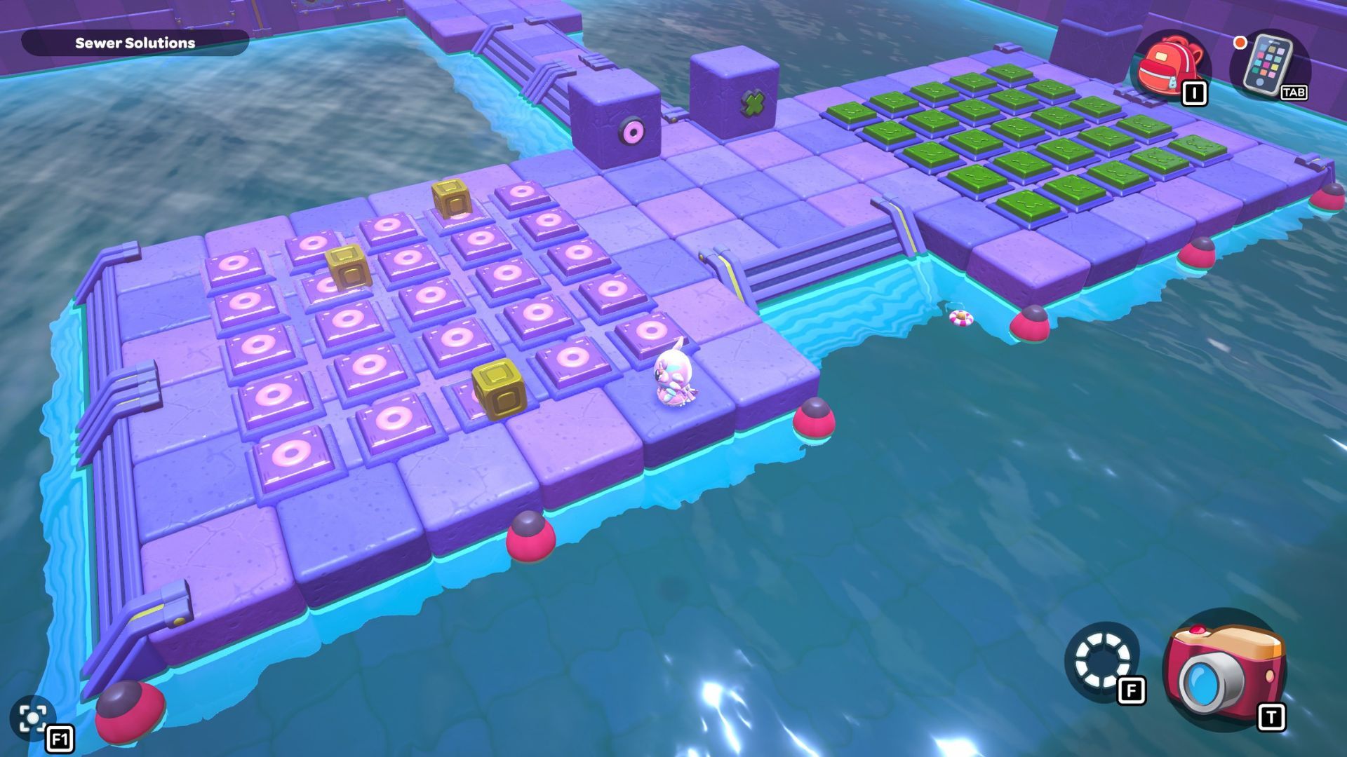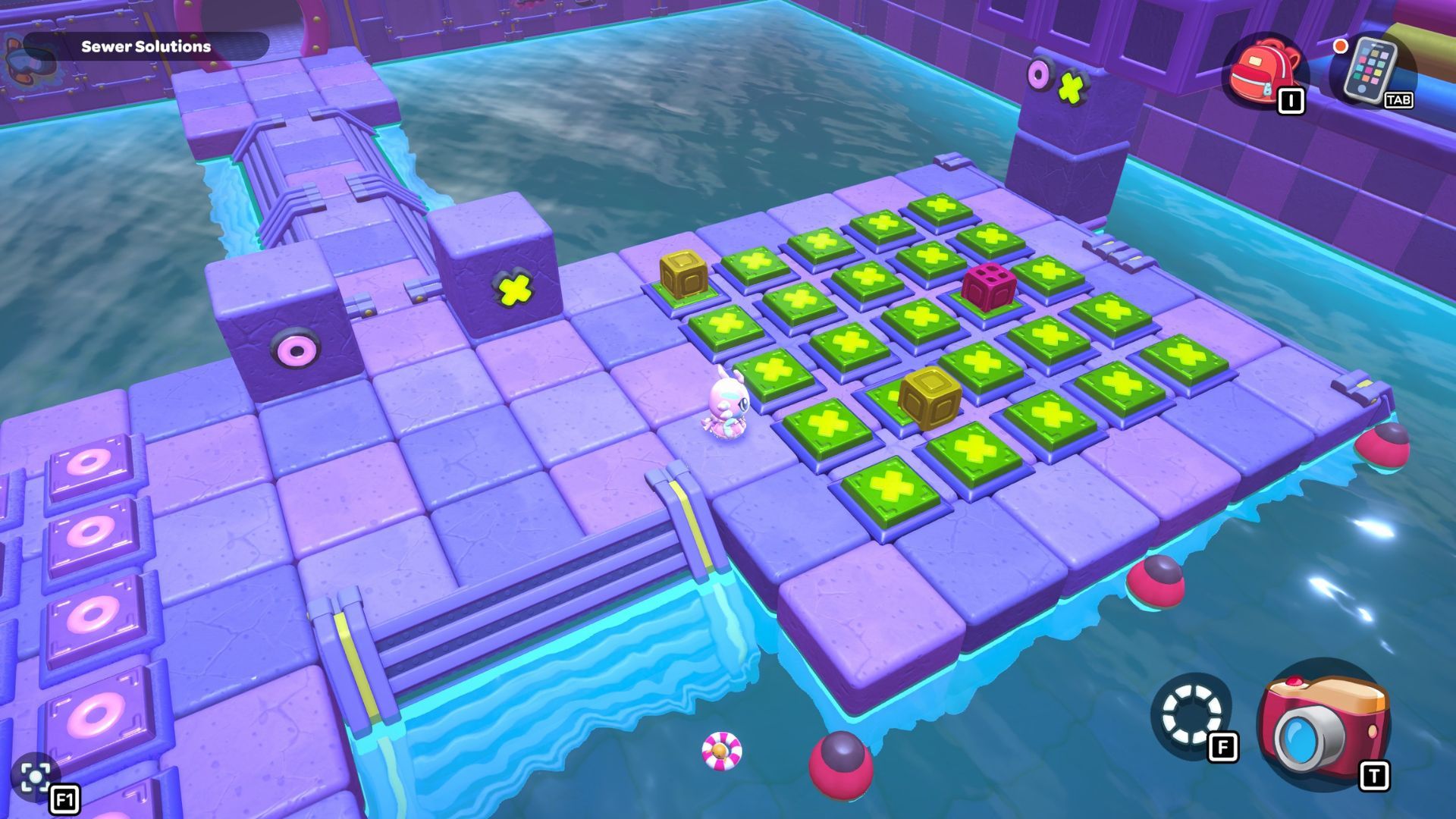 You’ll find the Bubbling Bridges Puzzle Room by going through the left door in the northeast corner of the City Town Sewers. The puzzle requires you to build bridges using the green cubes. Once you’ve created the bridges, you can move a red cube, which will allow you to reach the chest in the room.