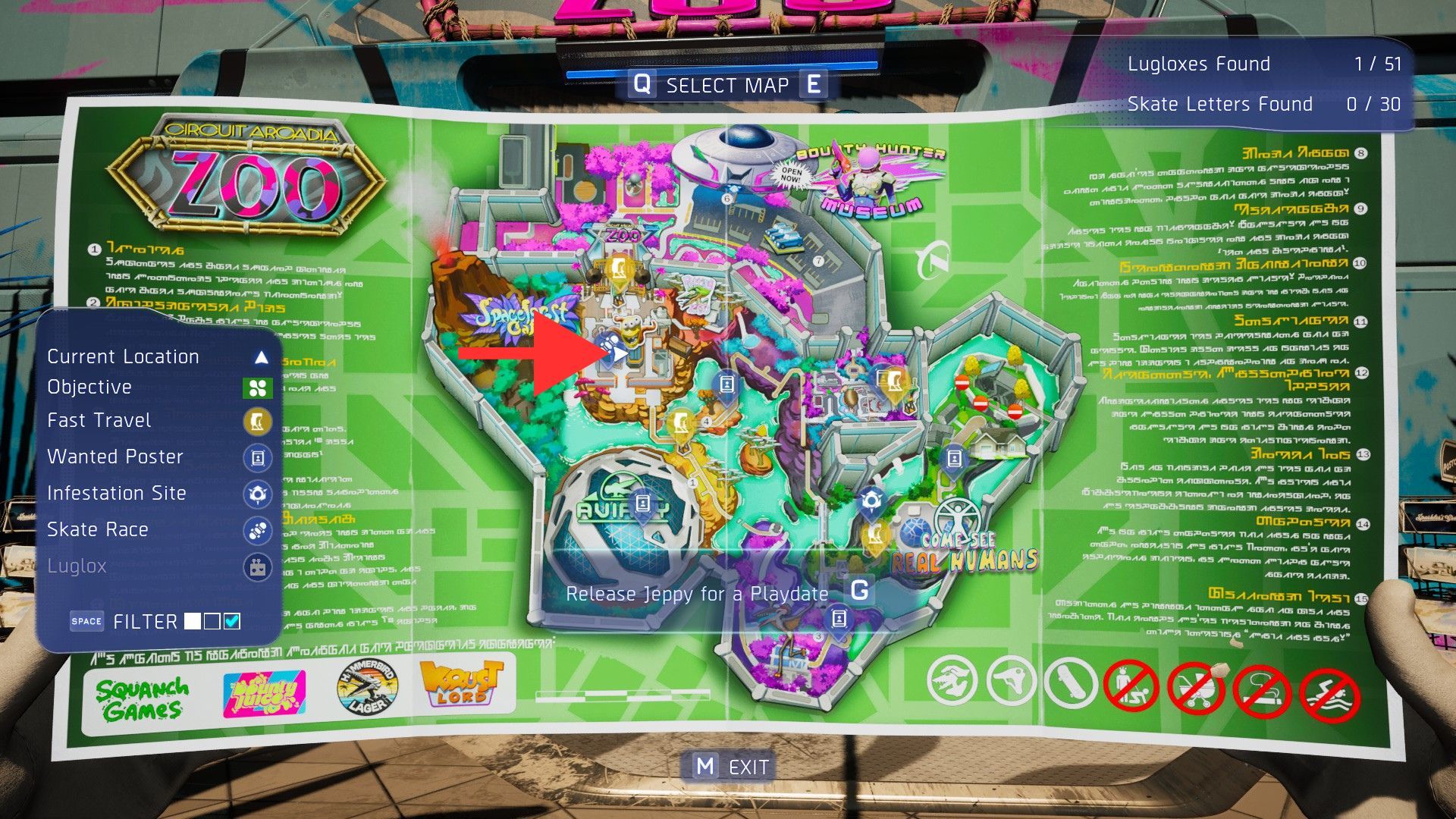 After completing the main story – dealing with Senator Muppy Doo, solving Larry Pinkstock’s murder, and rescuing your dad – you can begin this quest at Circuit Arcadia Zoo. It starts automatically when you approach the Zoo’s Gift Shop, which has a fast travel point right nearby. As you get close to the entrance, your mom will call and ask you to play with Jeppy.