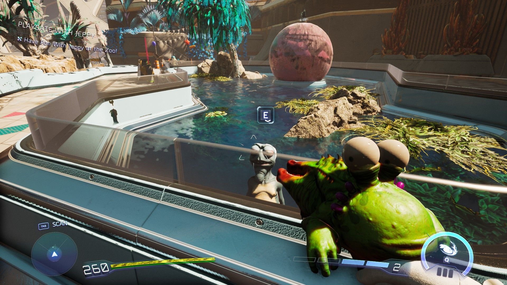 As soon as you let Jeppy go, he’ll run off quickly. Keep up with him and make sure he doesn’t get into trouble. You’ll eventually find him trapped in a pen with alien toads—use Gus’s vacuum to save him. You’ll have to do this a few times during this part of the quest, so be prepared to use the vacuum whenever Jeppy seems about to touch something dangerous.