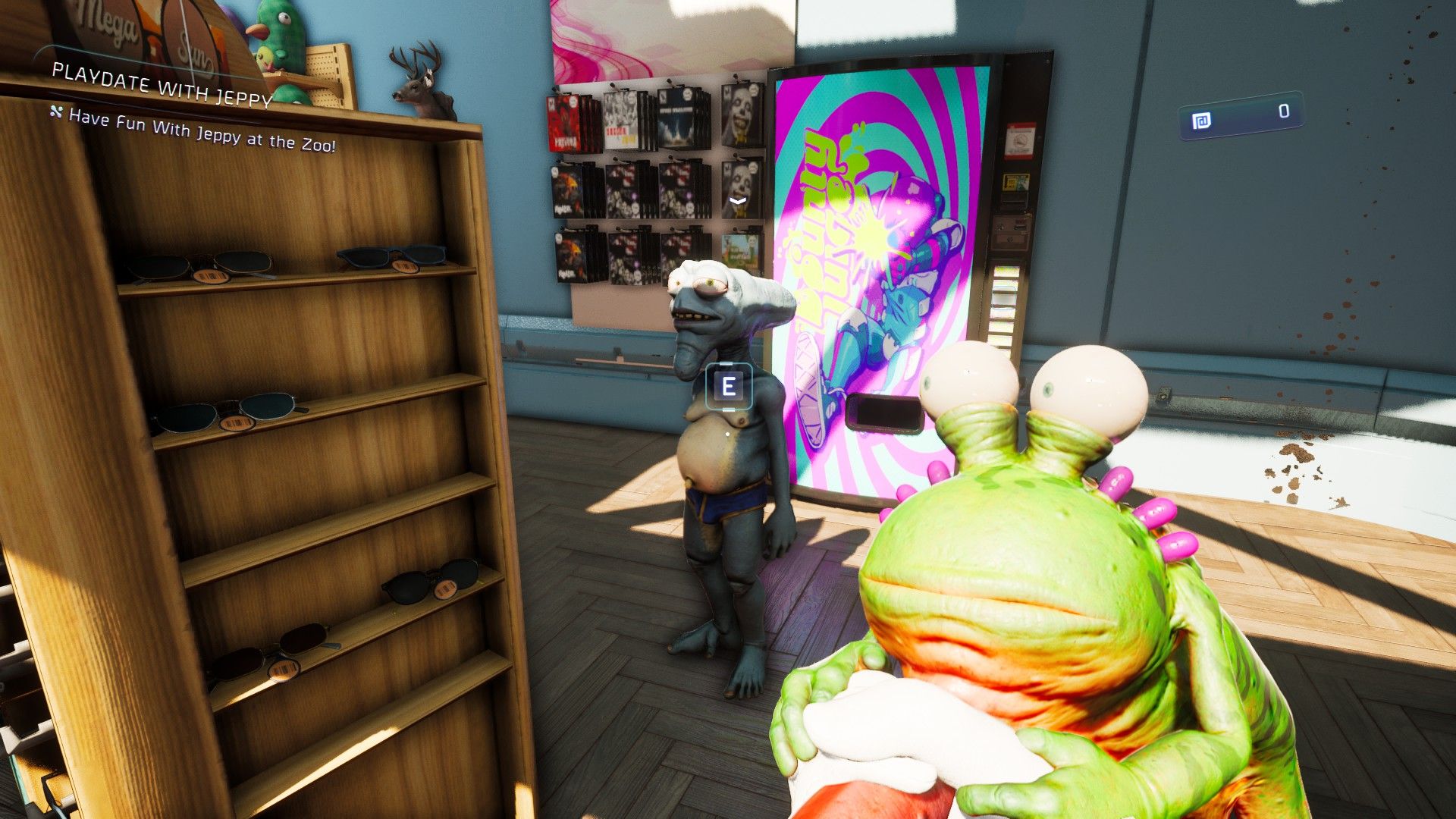 Now, go into the Gift Shop. You’ll find Jeppy hiding behind the sunglasses on the right side at the back of the store.
