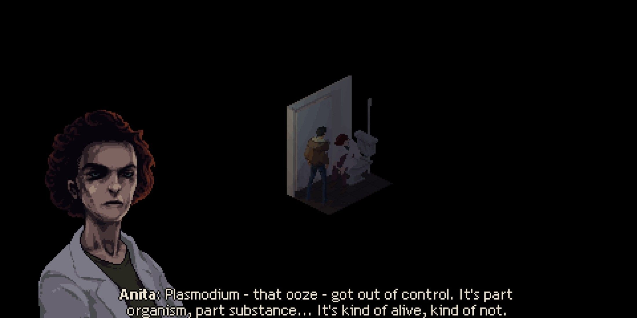 Shortly following his arrival at the last-recorded spot of Bartok, Tomasz notices something amiss when a monstrous, ooze-like substance, growing tendrils, overtakes the train station and causes the locals to act irrationally. Soon, we discover that this substance, named “Plasmodium”, is a quasi-sentient creation born from human intervention that has spiraled out of control. Tomasz learns this directly from one of the scientists involved in the project. Initially, Tomasz’s visit was intended for fact-finding and a possible rescue of Bartok; however, as the story unfolds, it transforms into a cautionary tale of science gone terribly awry, blending elements from popular horror series like Resident Evil with its deeper explorations of corruption, labor rights, and social inequality.