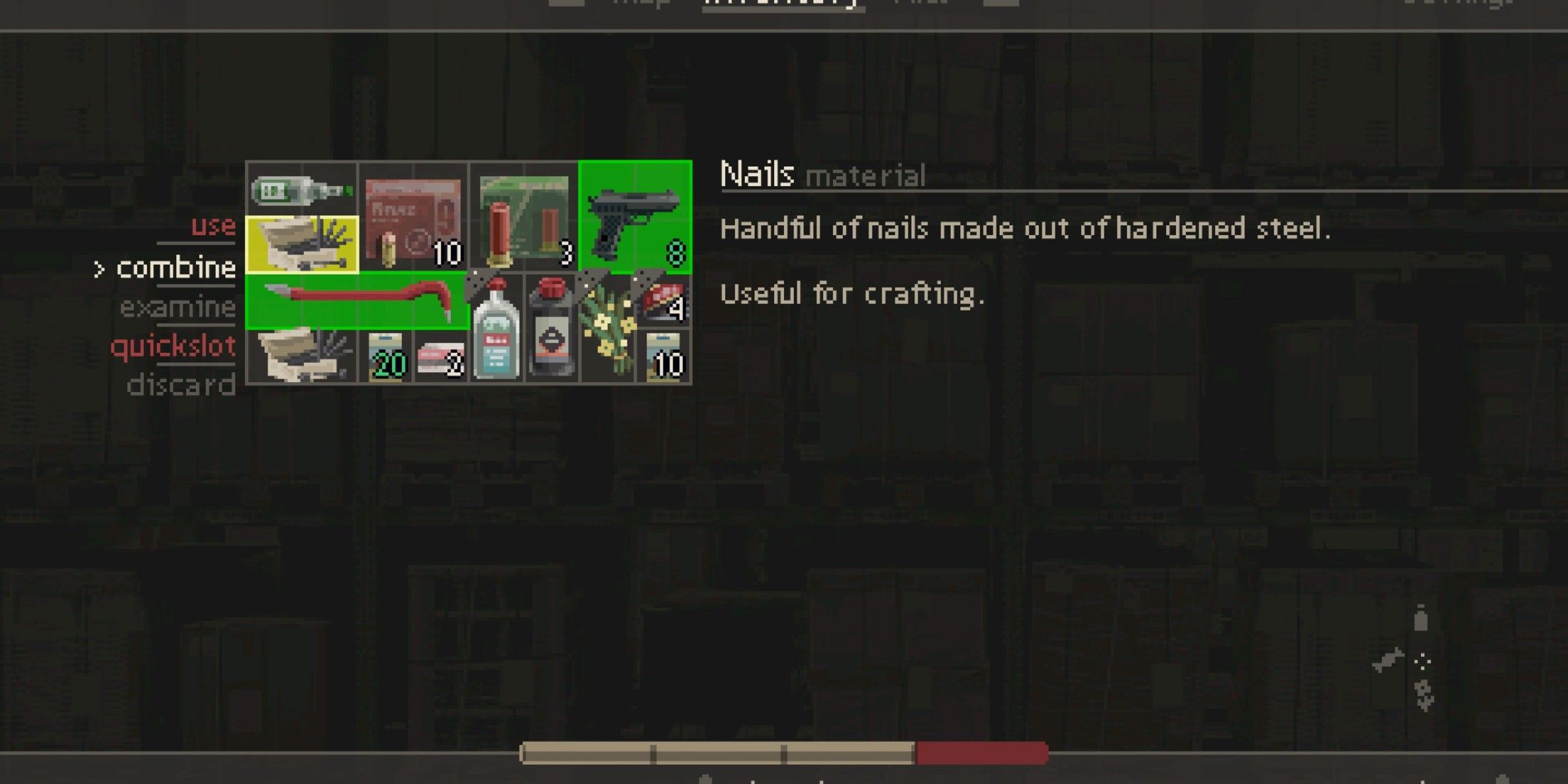 Exploring every nook and cranny leads to numerous useful finds, reminiscent of traditional survival horror games, where these picks-ups can be combined to create healing items or ammunition. It’s worth mentioning that we found ourselves with an abundant supply of healing and ammo when playing Holstin on the suggested difficulty level. The inclusion of melee weapons that deteriorate over use introduces a resource management aspect that might not have been as apparent otherwise. Melee fights can feel a bit floaty, but they’re potent enough to dispatch any enemies still struggling towards Tomasz. However, it’s the ranged combat in Holstin that truly shines as one of its key attractions.