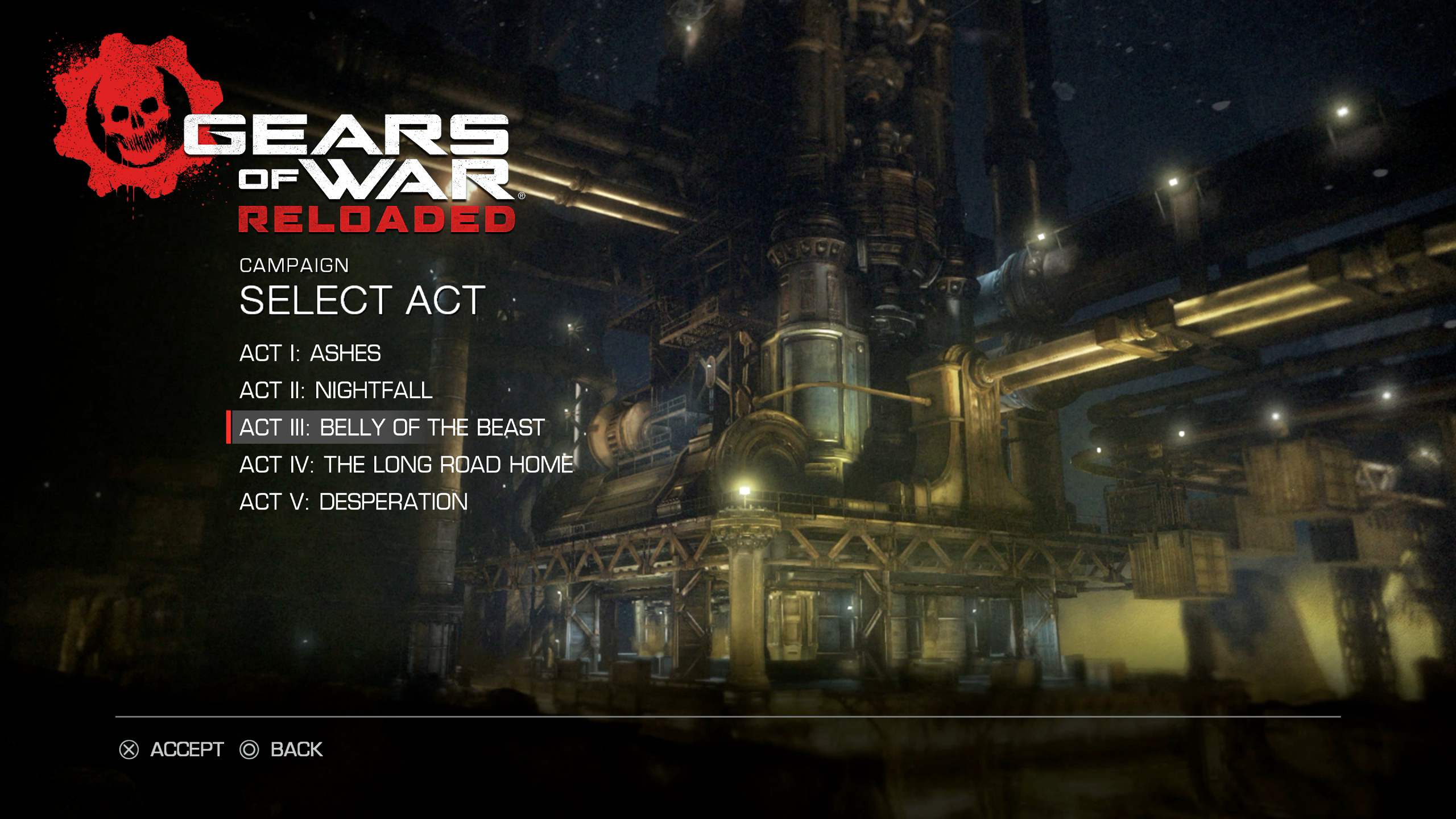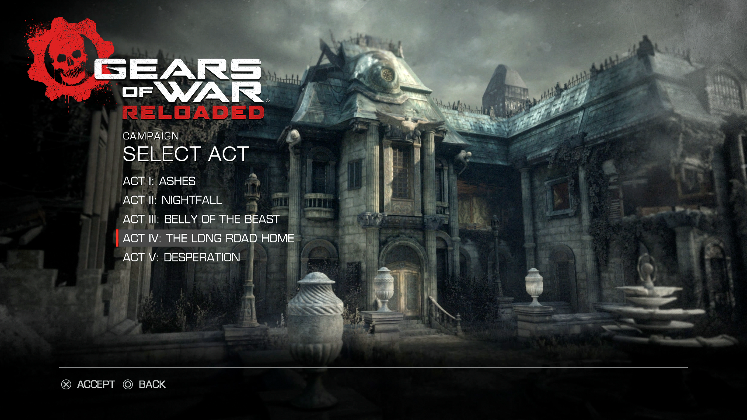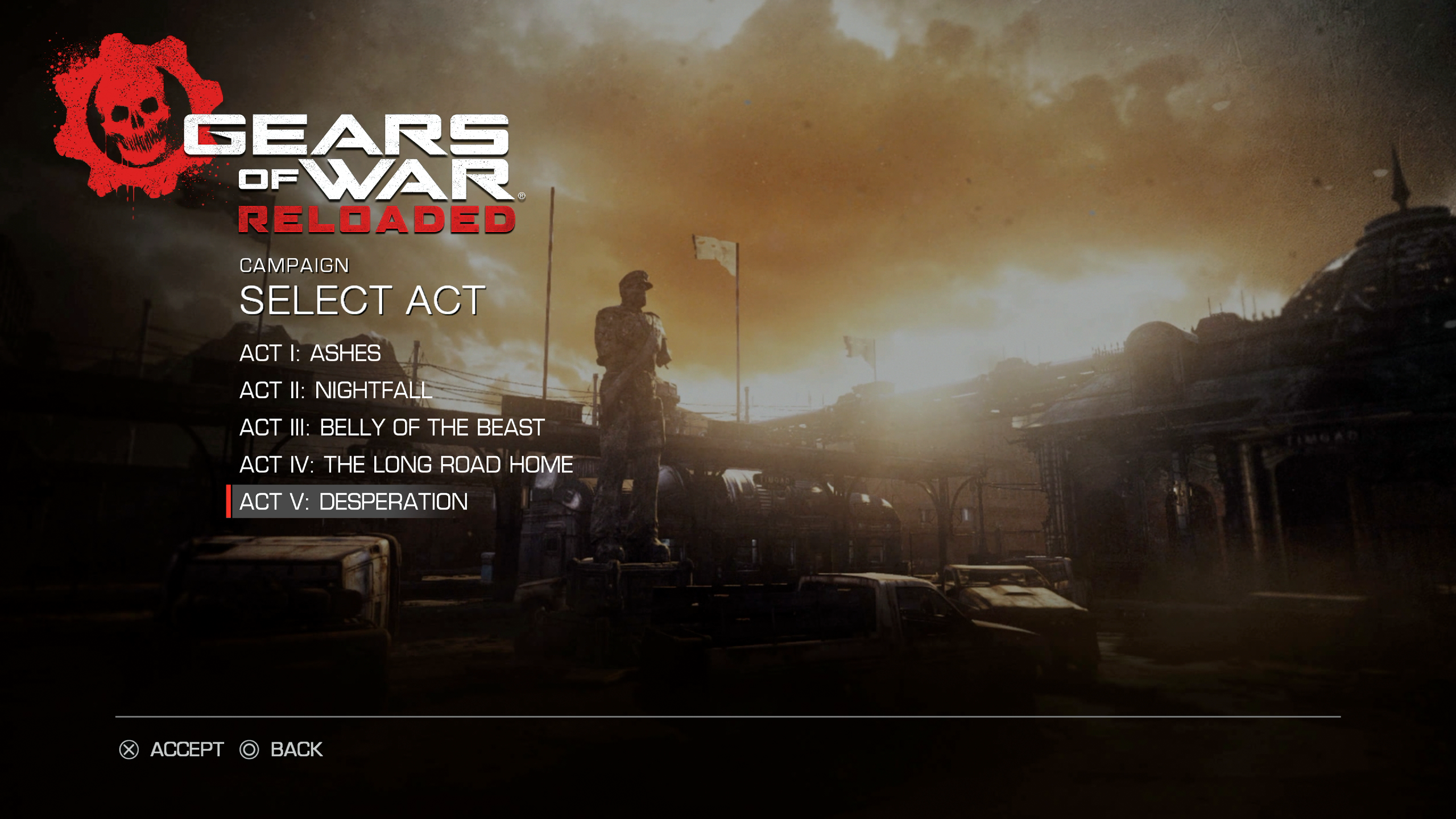 In the game “Gears of War: Reloaded,” there is an option for chapter selection, enabling players to skip straight to any act or level they’ve previously accessed during their primary gaming experience.