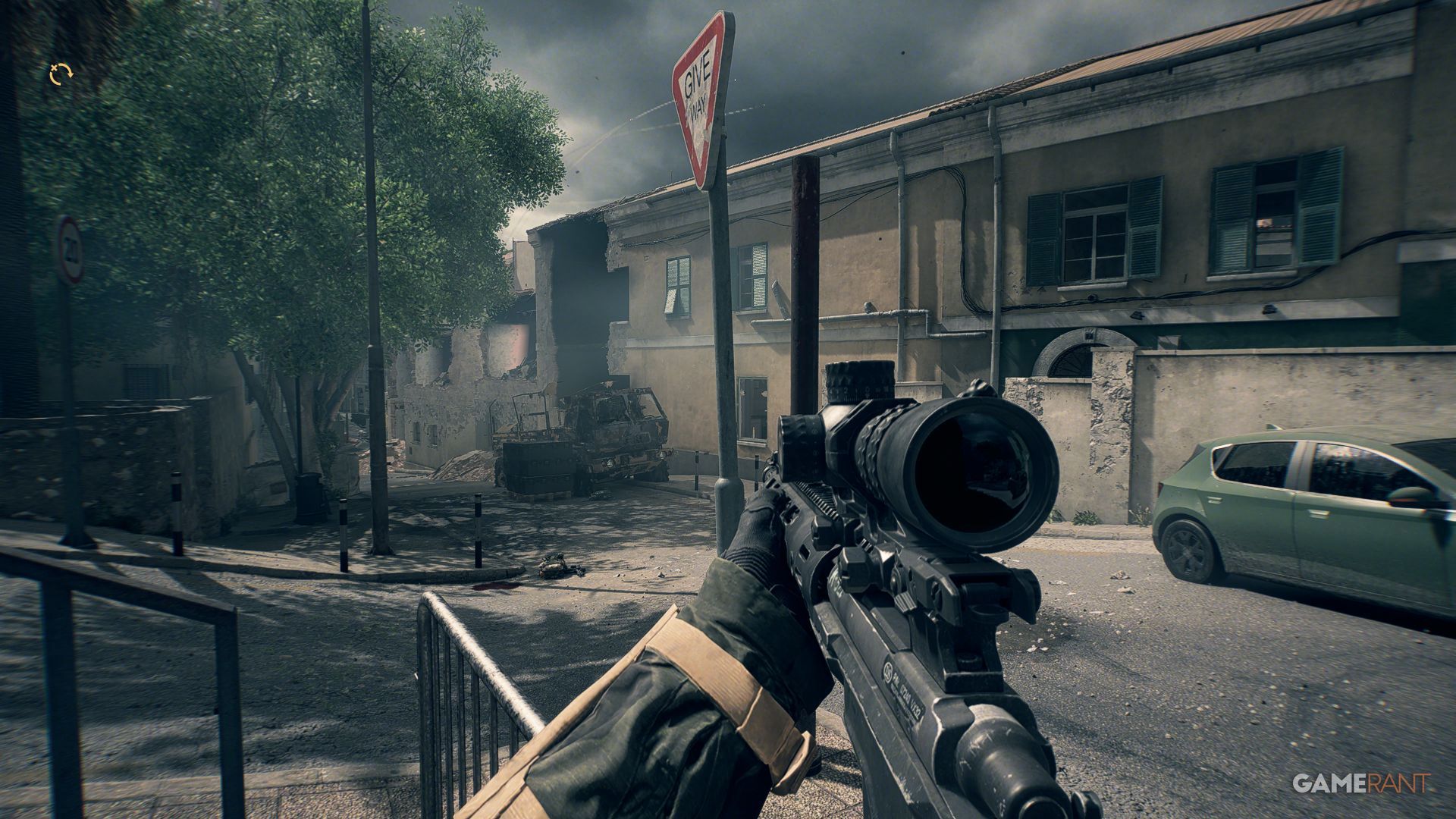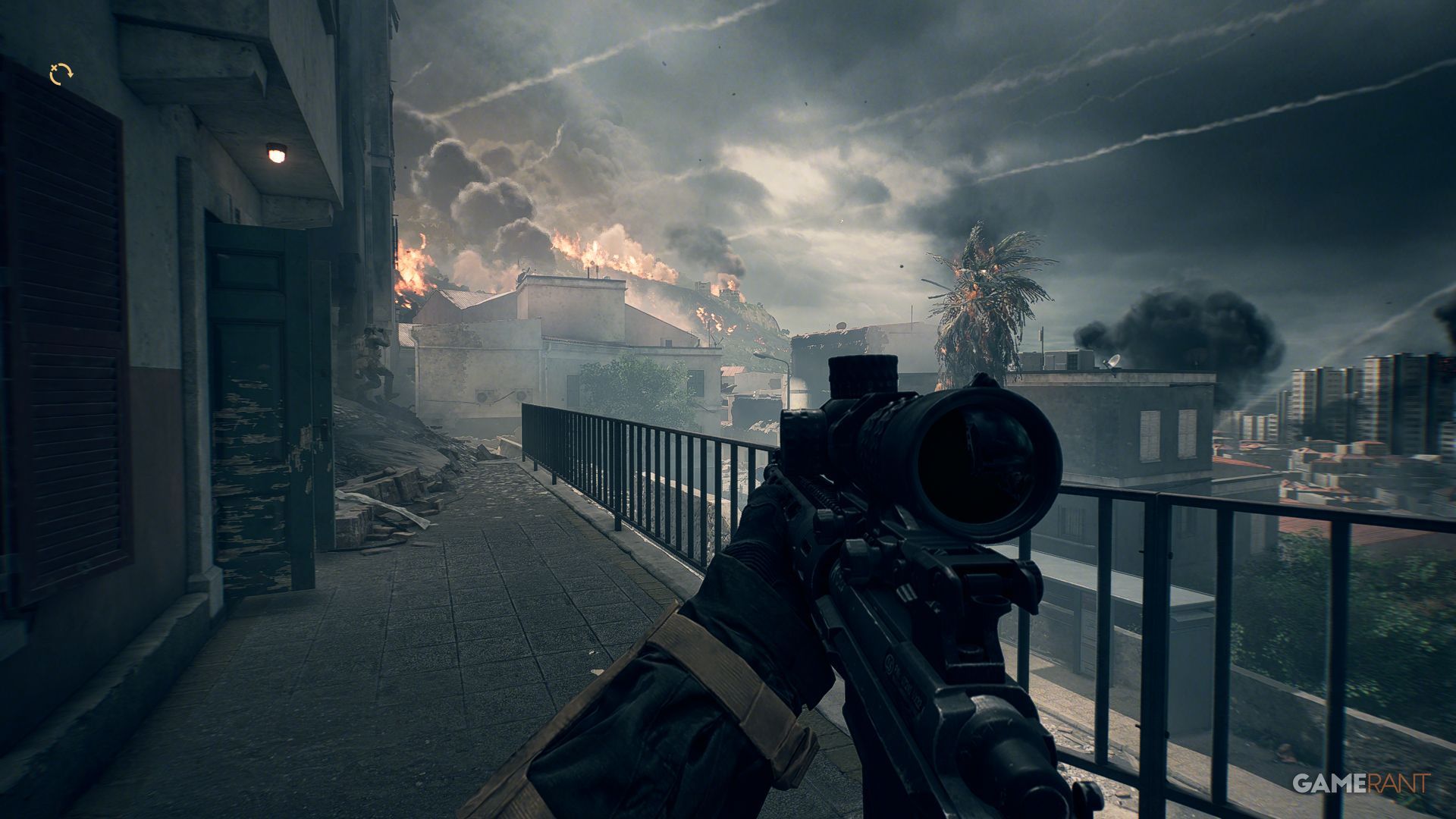 The first map in a pair, both set in Gibraltar, is named the Iberian Offensive. This particular map is larger and includes the use of tanks. The majority of combat occurs within the city streets, yet one side of the map features a considerable amount of greenery. A hazy atmosphere, filled with smoke, provides a melancholic setting against the otherwise picturesque island landscape.