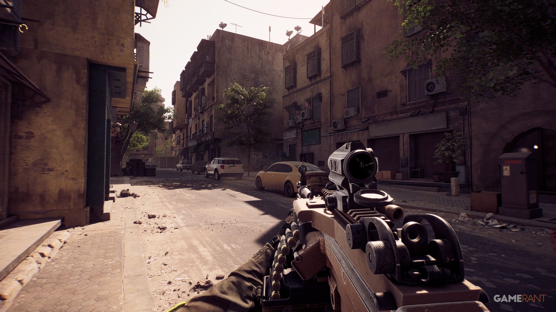 The “Siege of Cairo” game scenario unfolds in the heart of Egypt’s capital city, where intense battles occur between foot soldiers and armored tanks. This setting offers a traditional urban combat experience, with players engaging in fierce skirmishes even within partially damaged buses.