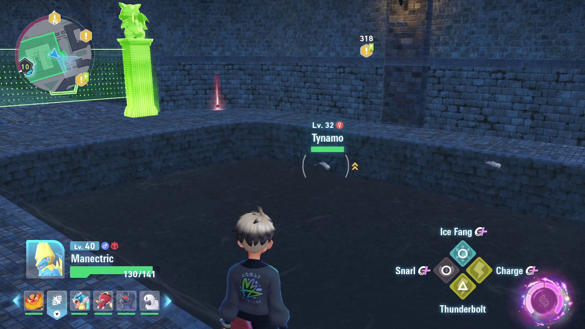 Okay, so when you’re at the pool, don’t take the stairs you see right away on the left. Instead, keep following the stone path. You’ll eventually hit the exit, and right in front of it, you’ll see a bunch of Tynamo swimming around in the water! They’re pretty cool, but watch out!