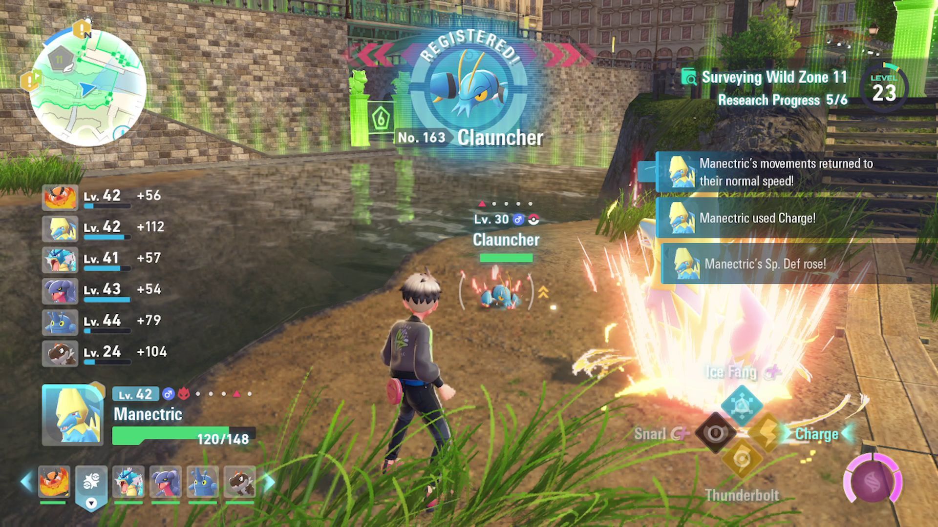 A powerful Alpha Clawitzer, level 42, has appeared near a Clauncher in the river. Be careful – it’s very aggressive!