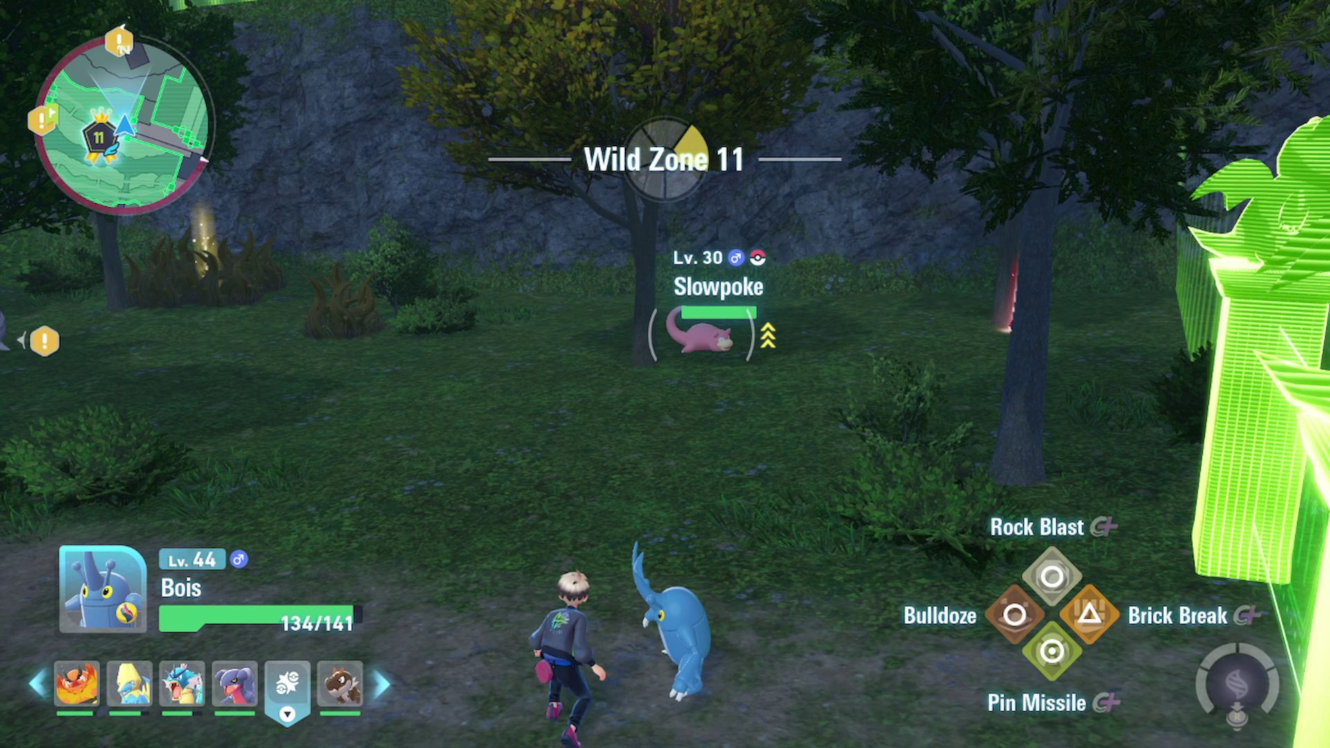 In the northeastern part of Wild Zone 11, you’ll find a level 41 Alpha Slowbro resting near a Slowpoke. It’s a tough Pokémon that doesn’t react quickly, but can take a lot of damage.