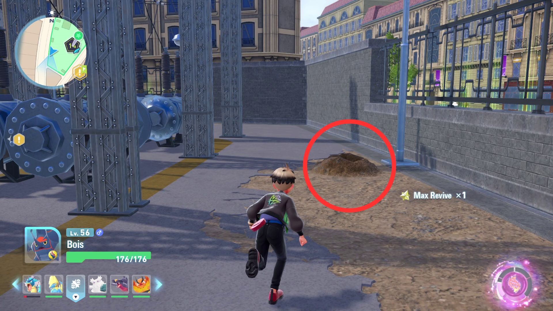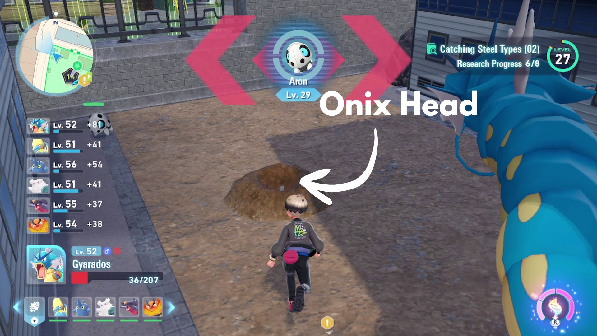 Lairon can be found in the same area as Aron – around the buildings in the north of Wild Zone 14. They’re less common than Aron, though. If you don’t see a Lairon, try leaving and quickly returning to the zone. This will refresh all the Pokémon spawns, giving Lairon another opportunity to appear.