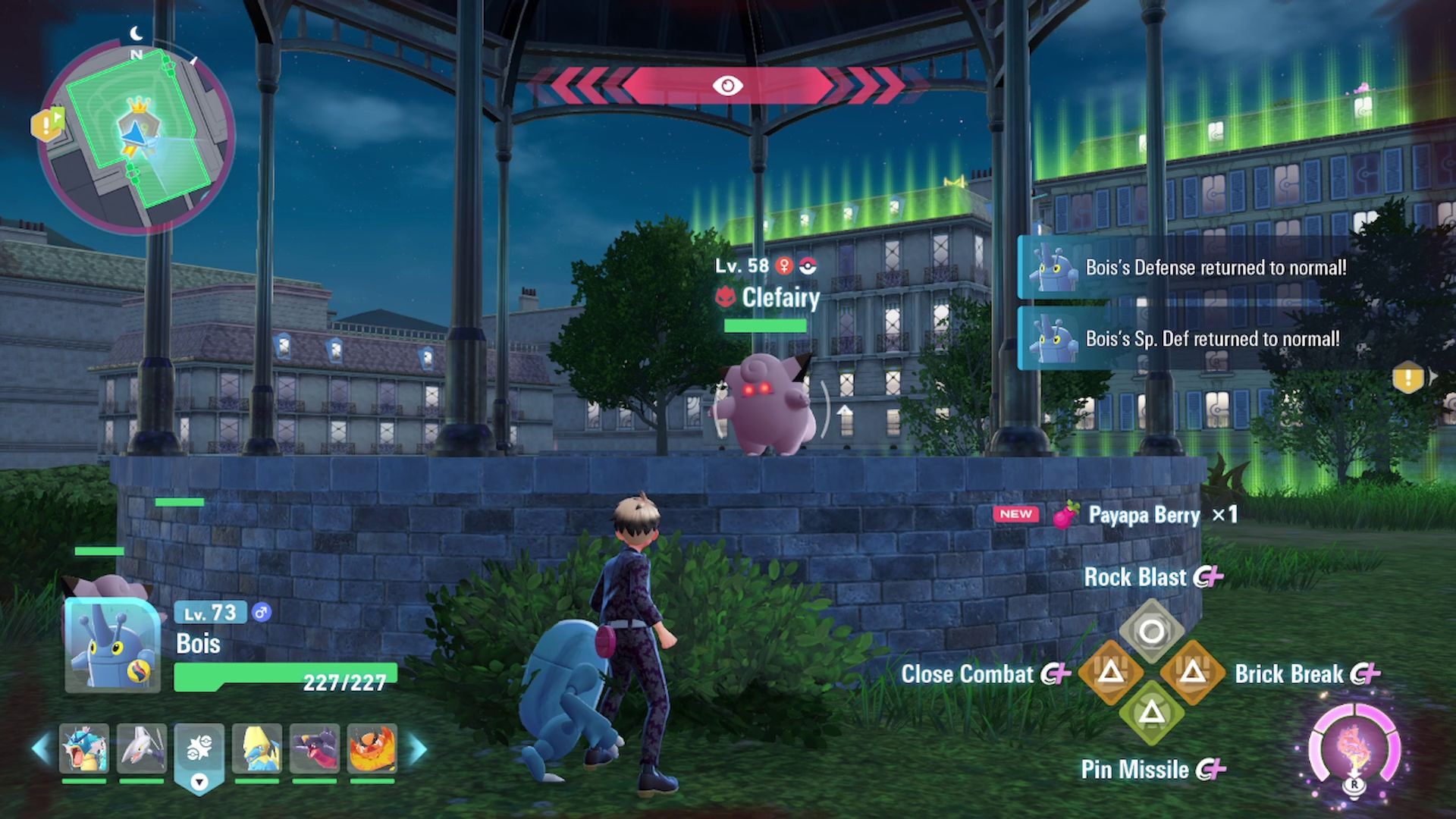 At night, you can see a level 58 Alpha Clefairy dancing with other Clefairy on the Pavilion. Clefairy evolves into Clefable when exposed to a Moon Stone. Once you’ve completed Main Mission 31, you can get a Clefablite at the Quasartico Mega Shard Exchange for 240 Mega Shards.