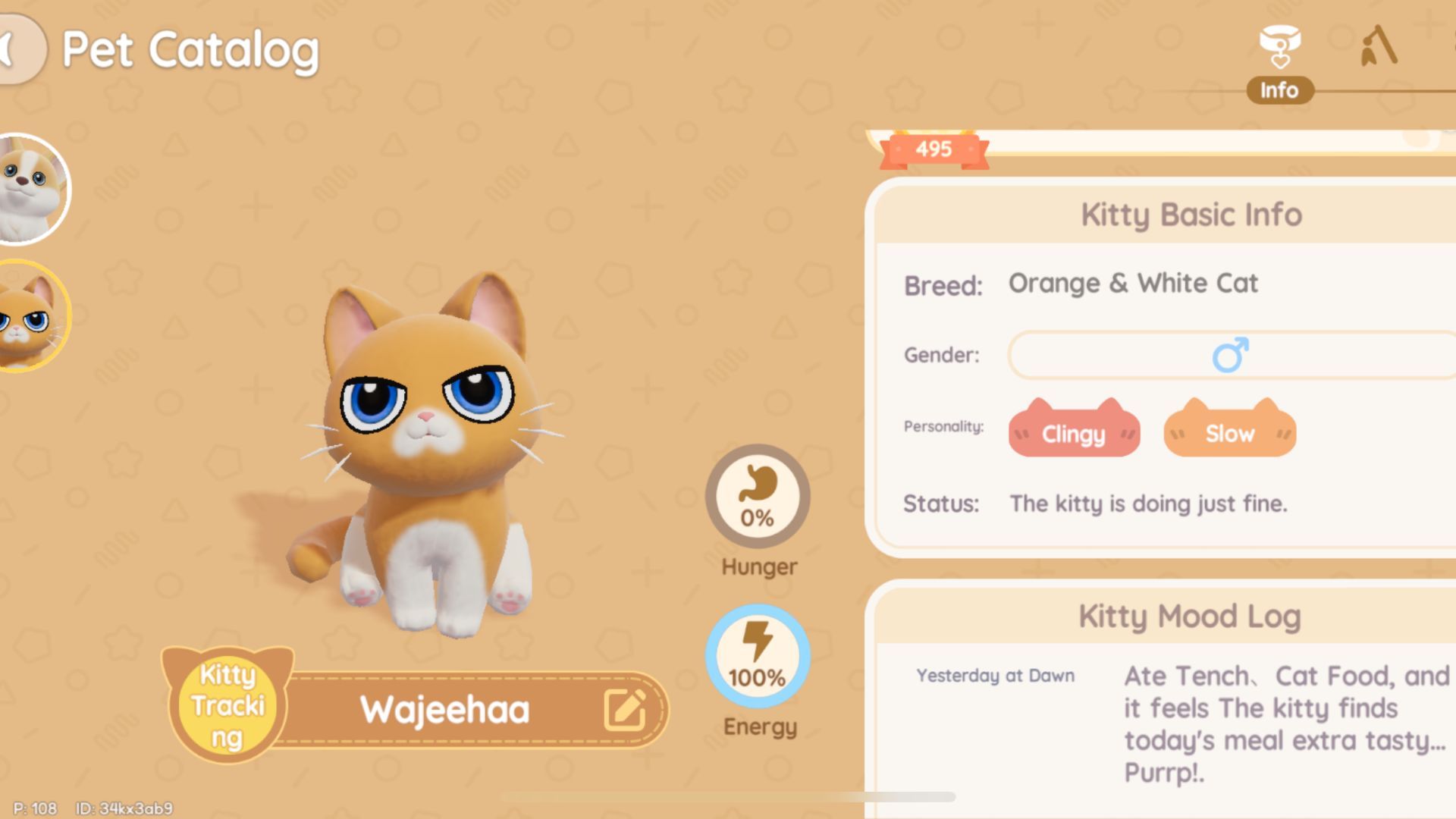 Once you’ve started the cat collecting hobby, you can get your first feline friend! The game lets you pick from several cats, and you can check out each one’s breed, gender, and personality before you decide.