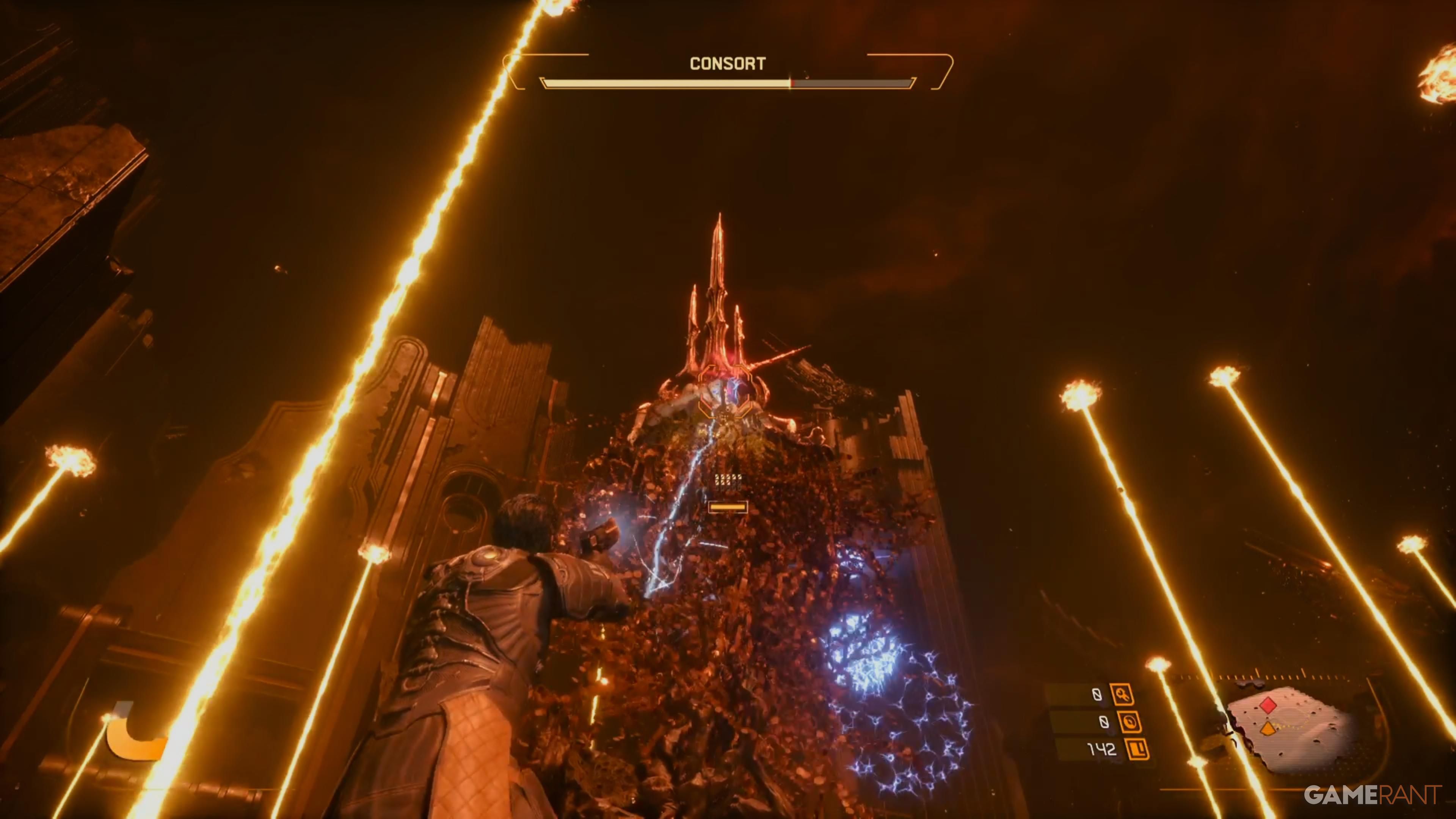 The Consort boss appears right after the game’s tutorial, in a unique area that isn’t considered a full biome. You only get one chance to defeat it – if you fail, a cutscene plays and Arjun appears in the Passage. Although you have just one attempt, the fight is manageable, and you can reload a saved game to try again if necessary.