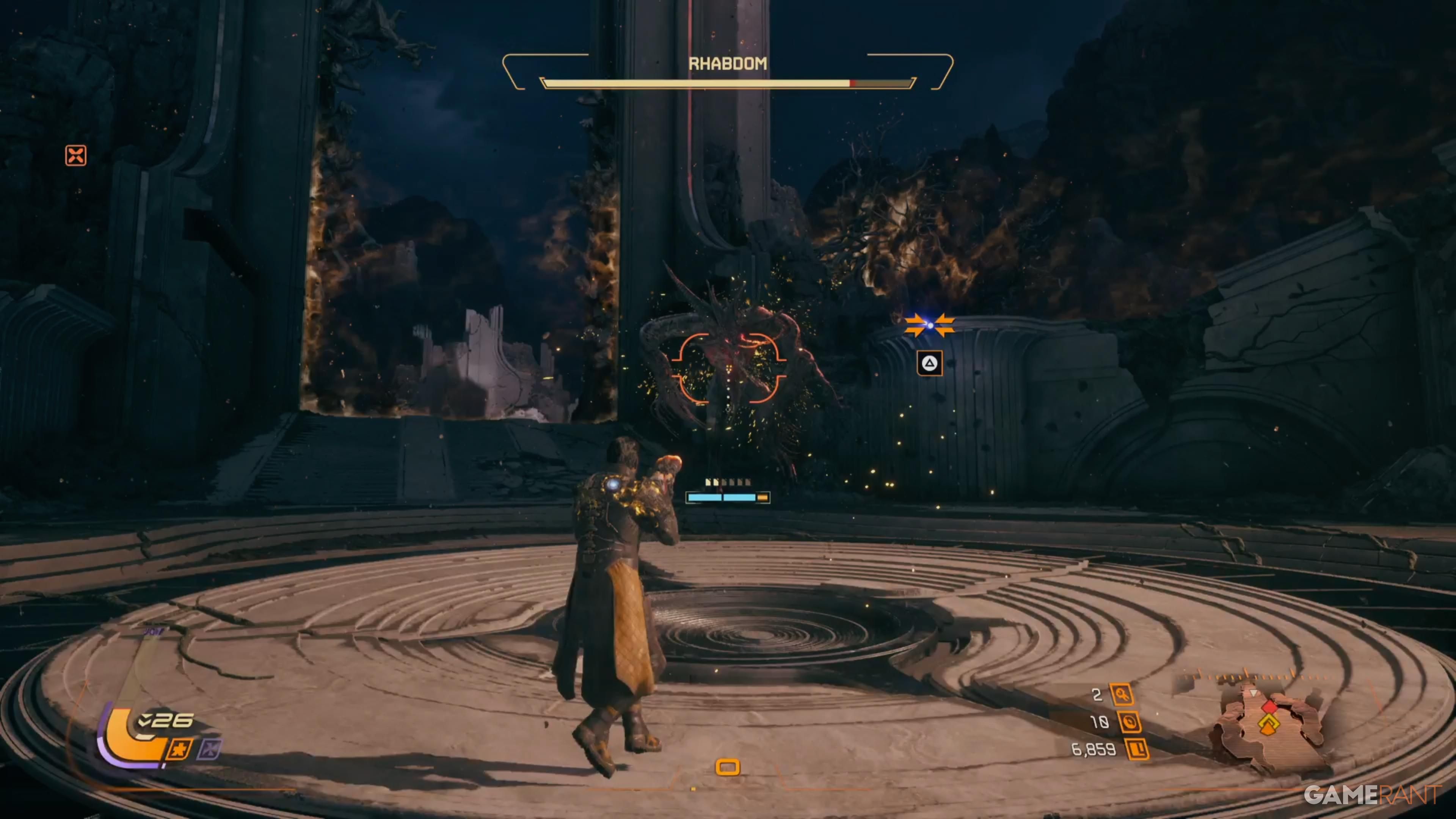 Rhabdom is one of the easiest bosses in the game, feeling more like a smaller challenge than a major one. It only has one phase, and there’s a delay before it attacks, giving you time to use your Overdrive and a few powerful attacks to reduce its health by half before it even begins to fight back.