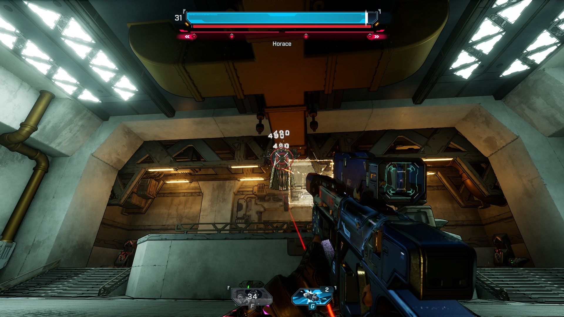 The battle with Horace starts with him hovering in the air, attacking with ranged projectiles and calling in extra enemies to create a challenge. He’s especially vulnerable to shock damage, so using an elemental weapon that deals shock is a good strategy.