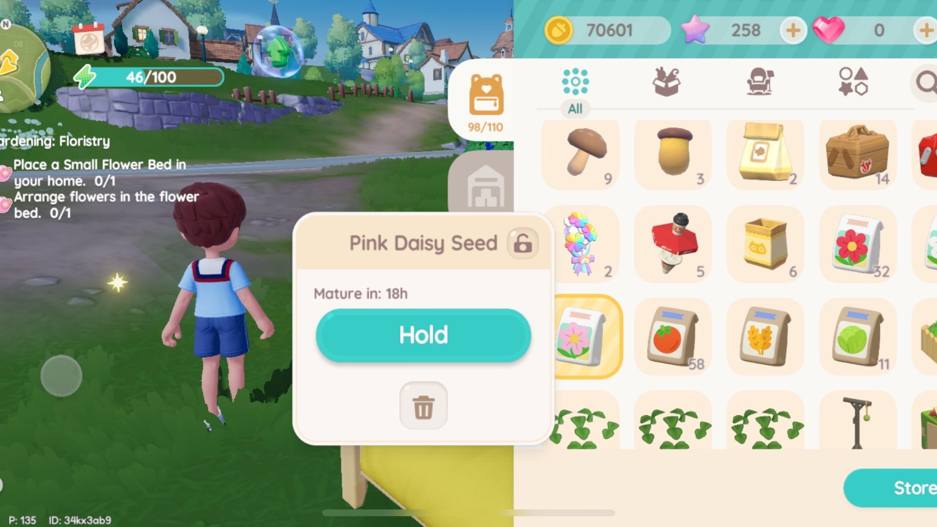 Once you reach Gardening Level 3, the first step is to buy Flower Seeds from Blanc. You’ll then be able to choose from two different types of seeds. When you’re just starting out, you can usually find Red Daisy and White Daisy seeds, which you can use to start creating new flower types through crossbreeding.