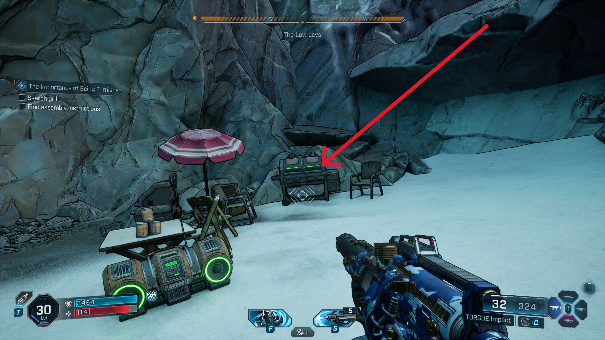 - Search grill – Head outside of Belton’s Bore and open the grill on the left, closest to the rock wall.