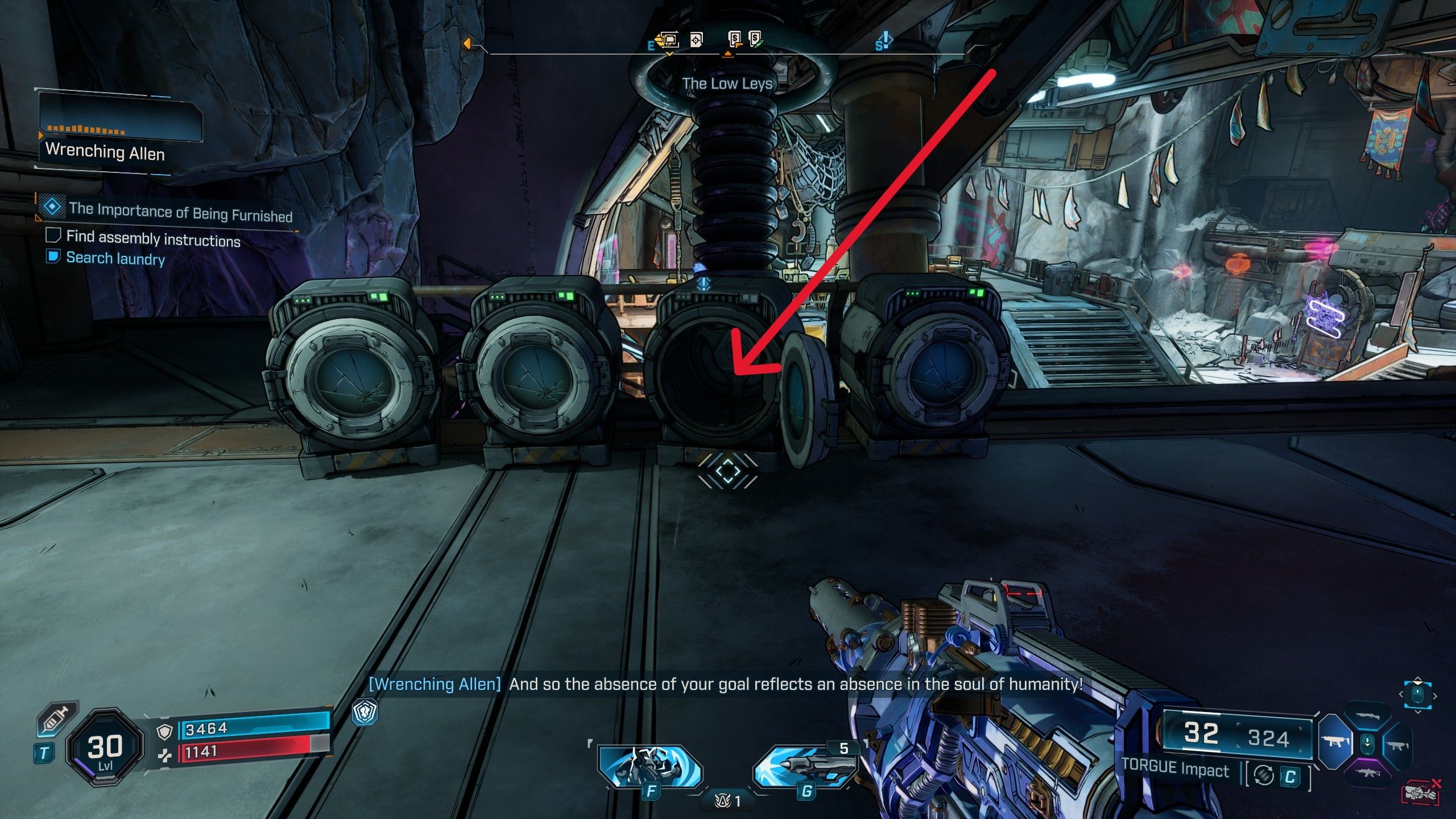 - Search laundry – Head to the upper left rooms of the Auger HQ and open the third laundry machine from the left.