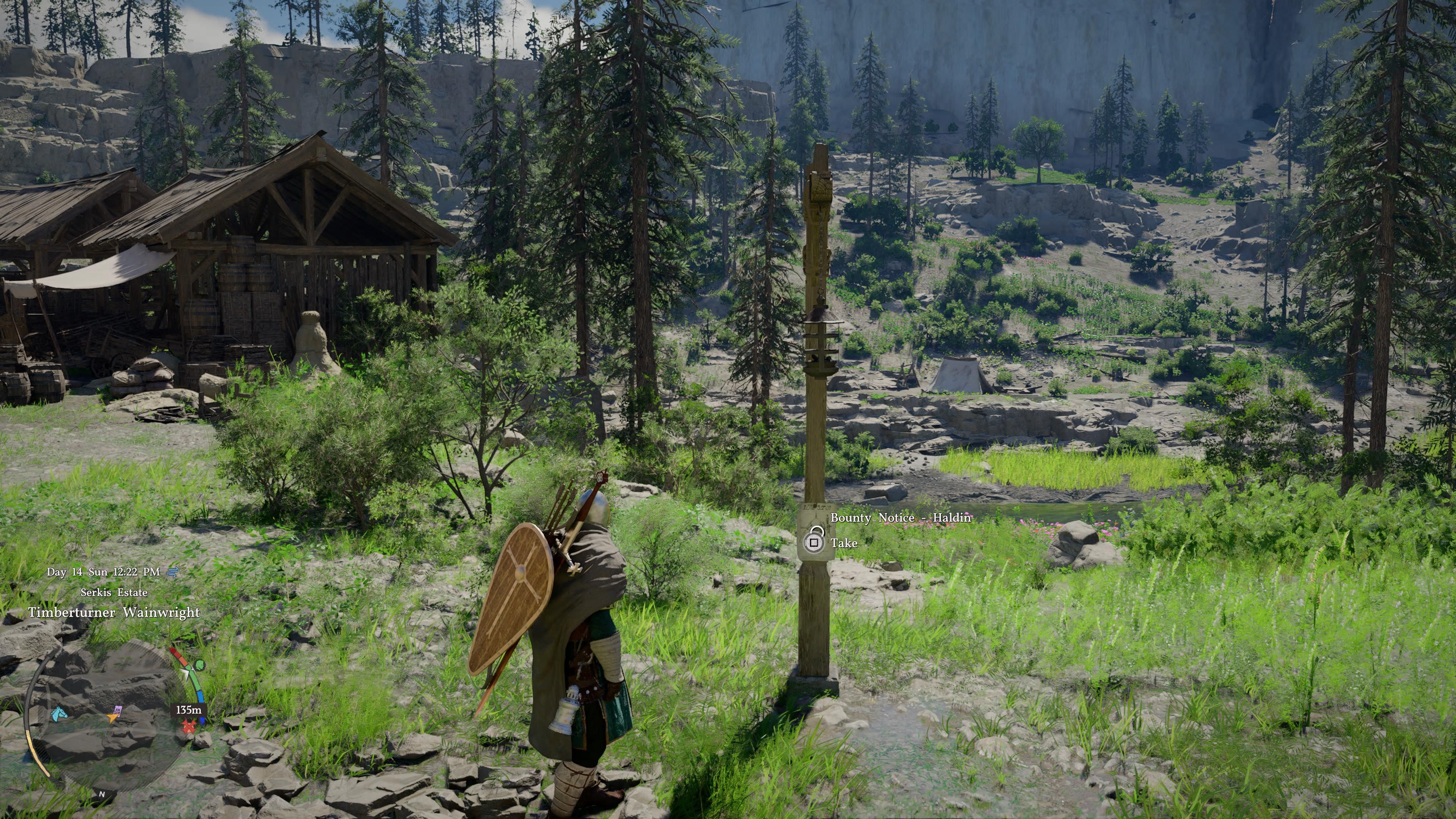 - After the Vilkom Outpost is finally cleared, players will be able to find Haldin’s bounty notice during exploration of the Hernand Town surroundings. For us, the poster appeared on the wooden pole near Bloomwood Ranch, right above the Nas River marker on the map, as seen below.