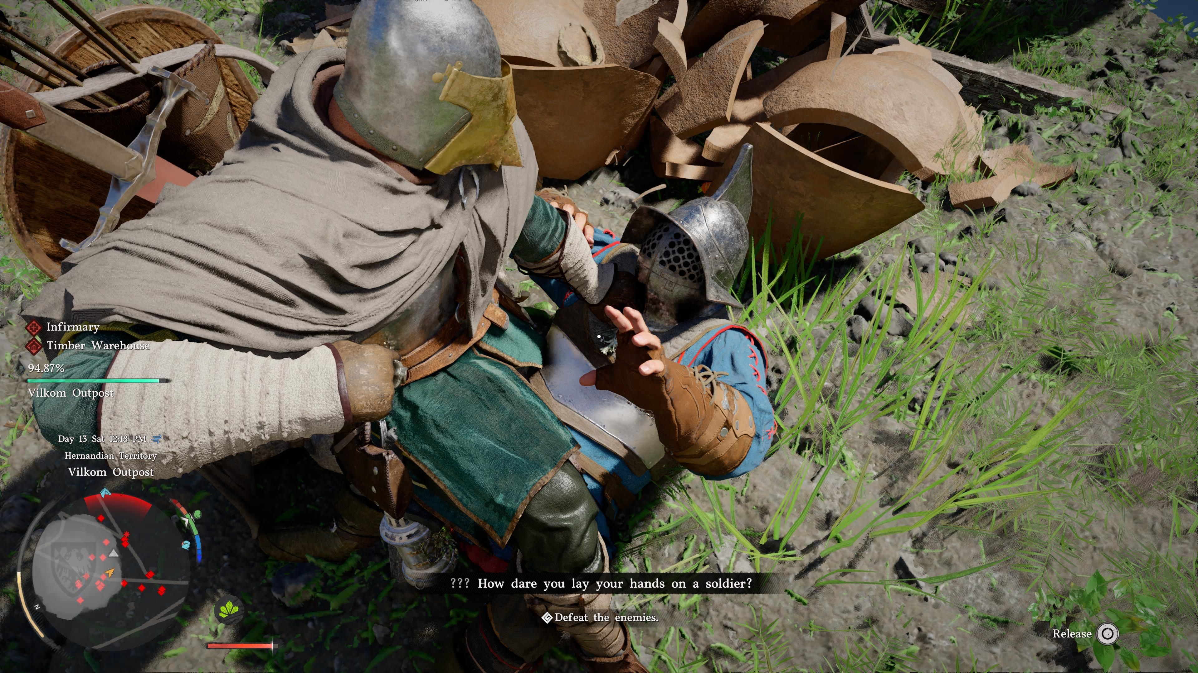 - The Vilkom Outpost is heavily guarded with tough berserk enemies and many rifle shooters, so clearing it single-handedly in a direct fight may be challenging early on. To make it more manageable, try luring out small groups of enemies from the outpost to deal with them separately. You can also use roaming Hernand guard patrols to aid you in combat — and get more loot from them, too.