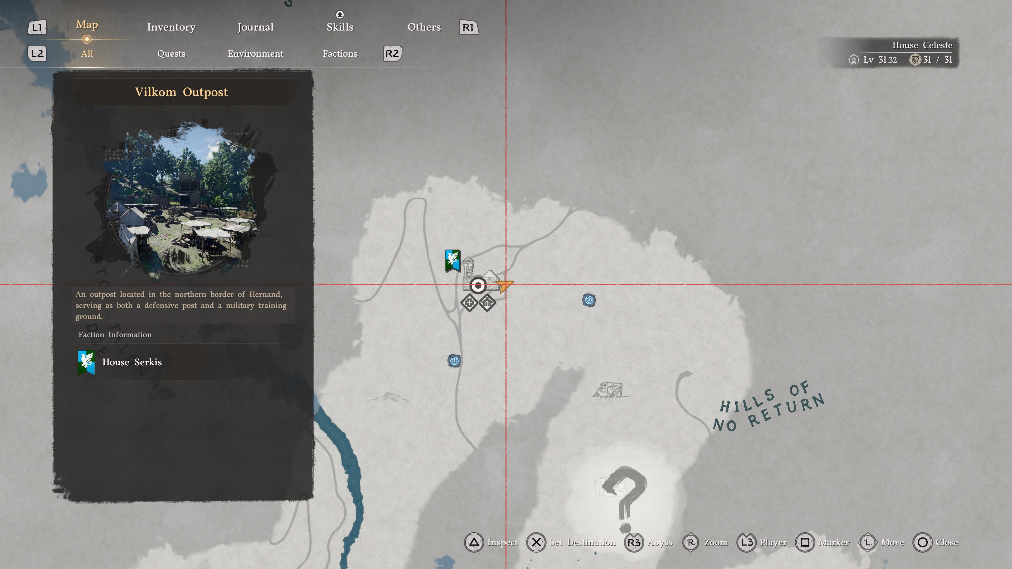 - The outpost is located northeast of Hernand Town, right near the Hills of No Return, as shown on the map image above. There are two fast travel points around the outpost, so make sure to activate at least one of them first.