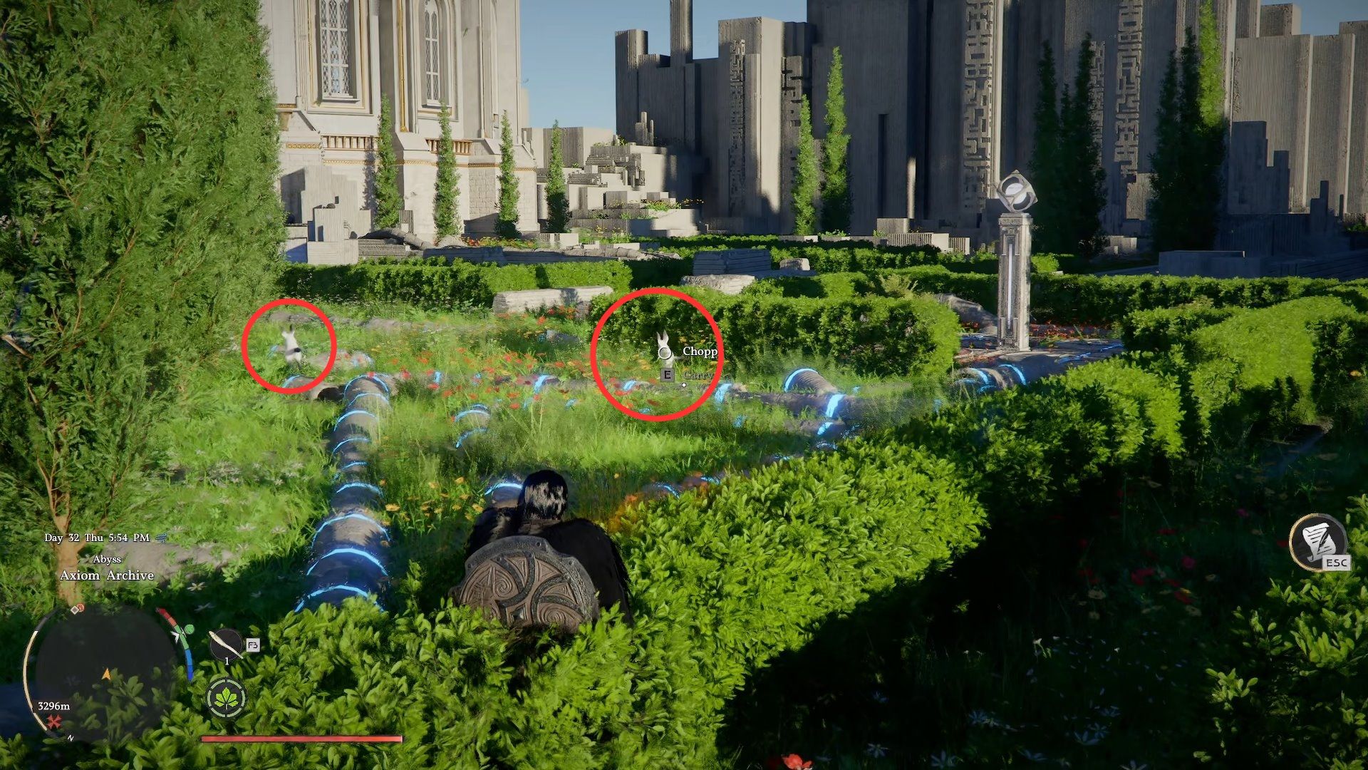 Slowly walk around, and you’ll easily find multiple choppies roaming about. These are the small white rabbit creatures that run away when you approach them.