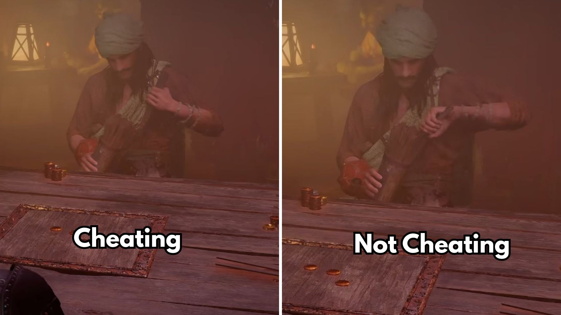 If you suspect someone is cheating at Duo or Five-Card in Crimson Desert, watch their hands and elbows closely while they deal the cards.