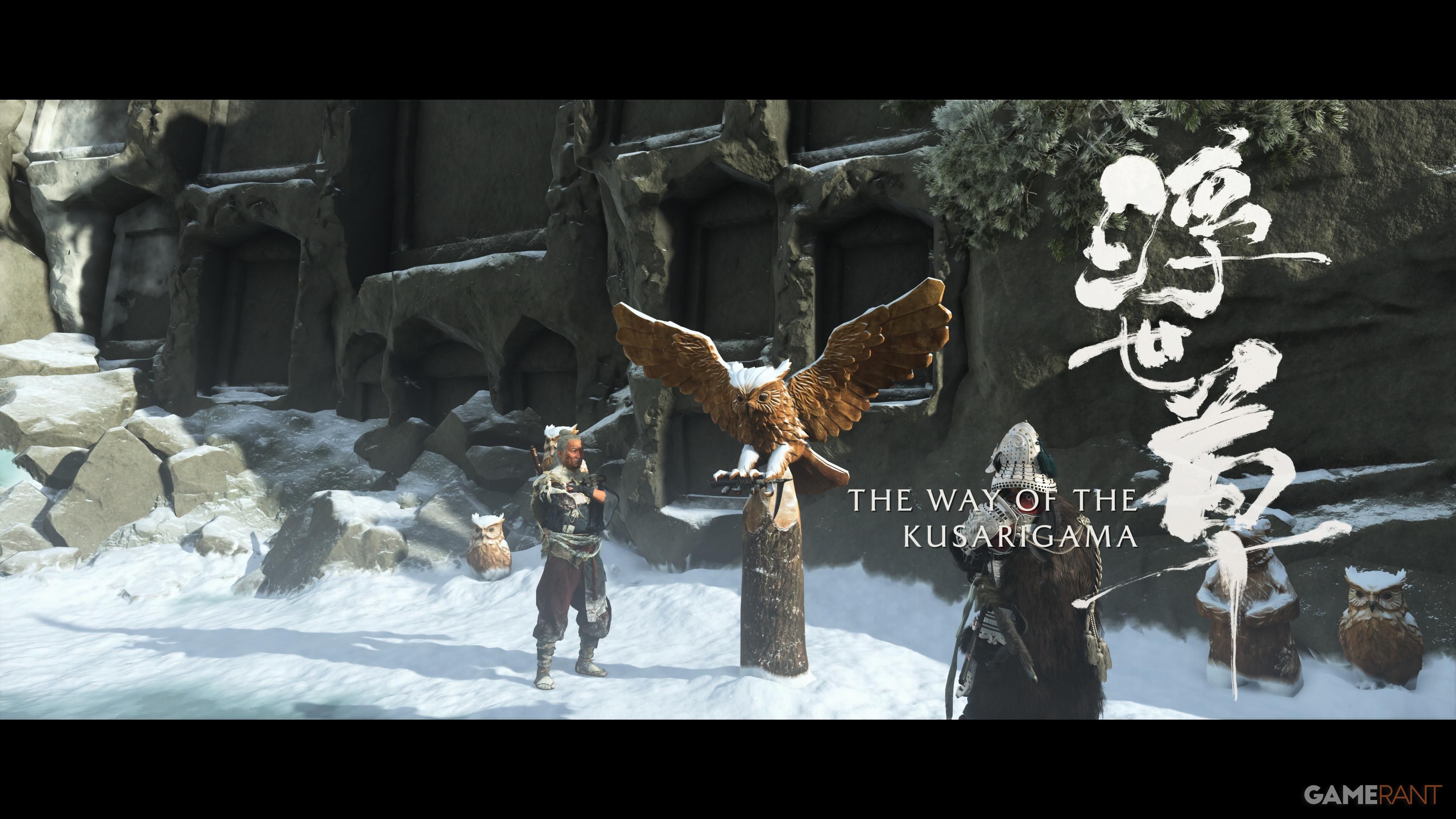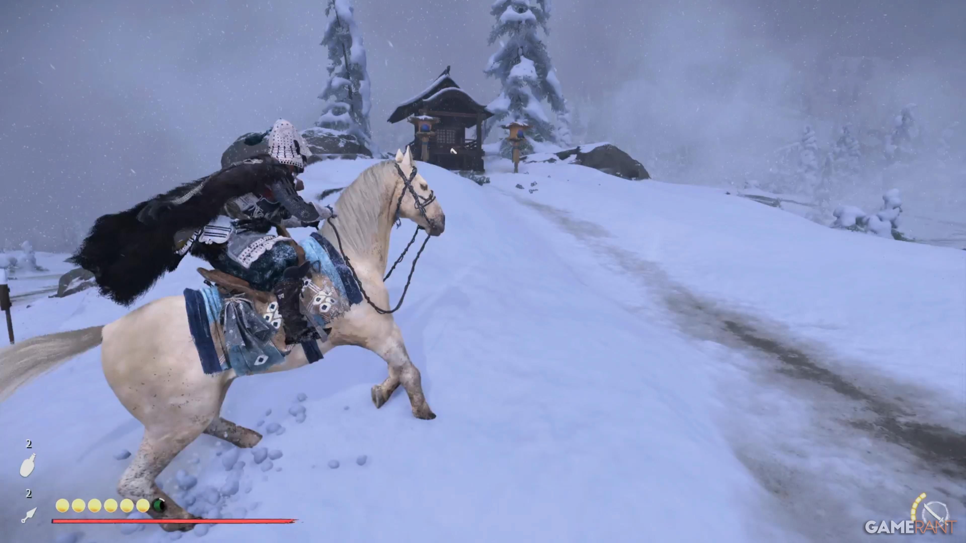 When you arrive in the northern area, Teshio Ridge, you’ll encounter a new game feature where your health bar begins to freeze. This lowers your maximum health and blurs your vision if you remain in the cold for an extended period. Once you’ve completed the initial section with the Kitsune and explored the area, you’ll find a quest called The Way of the Kusarigama marked on your map. Completing this quest will reward you with the Kusarigama weapon, but it’s located far north at Owl Mountain.
