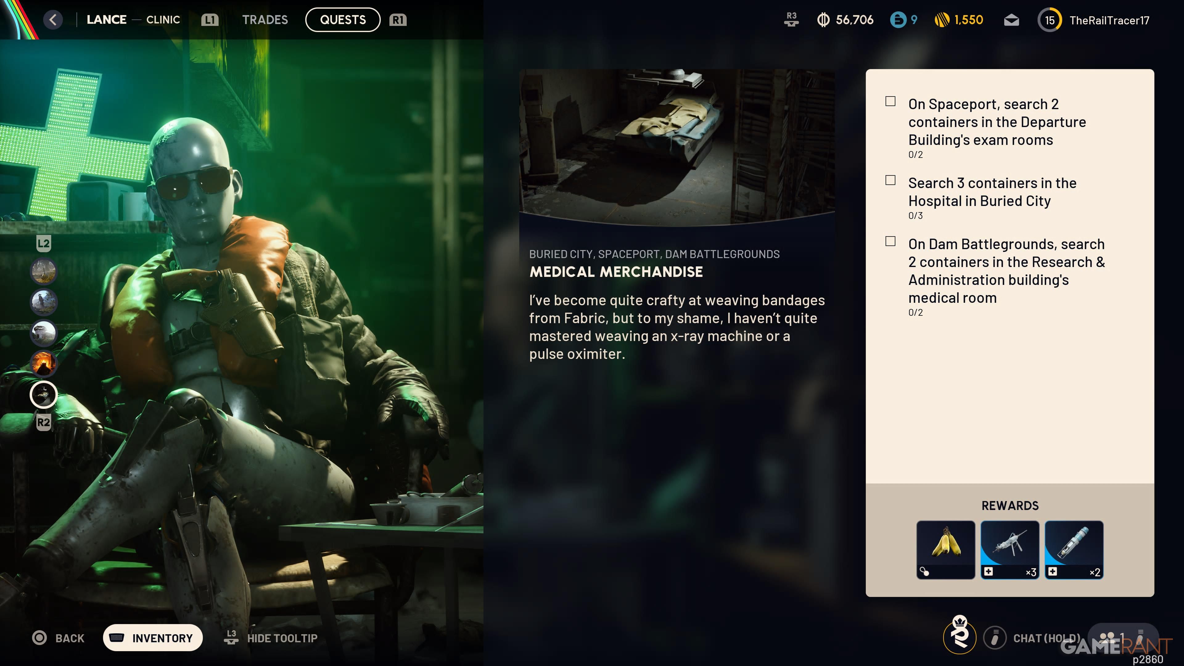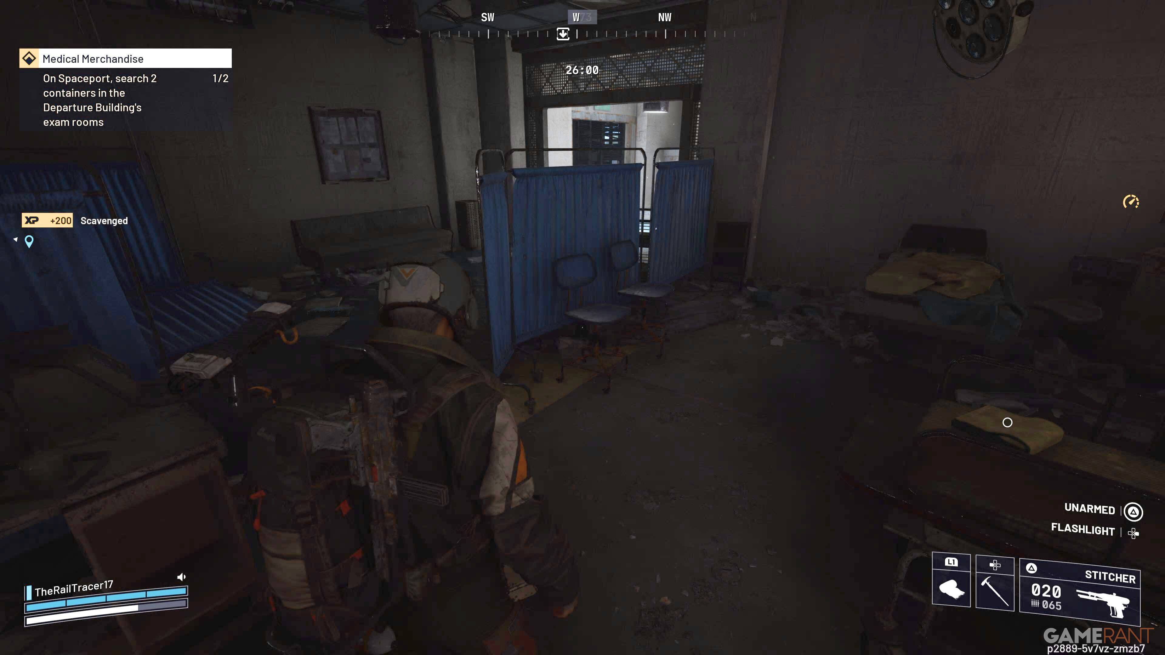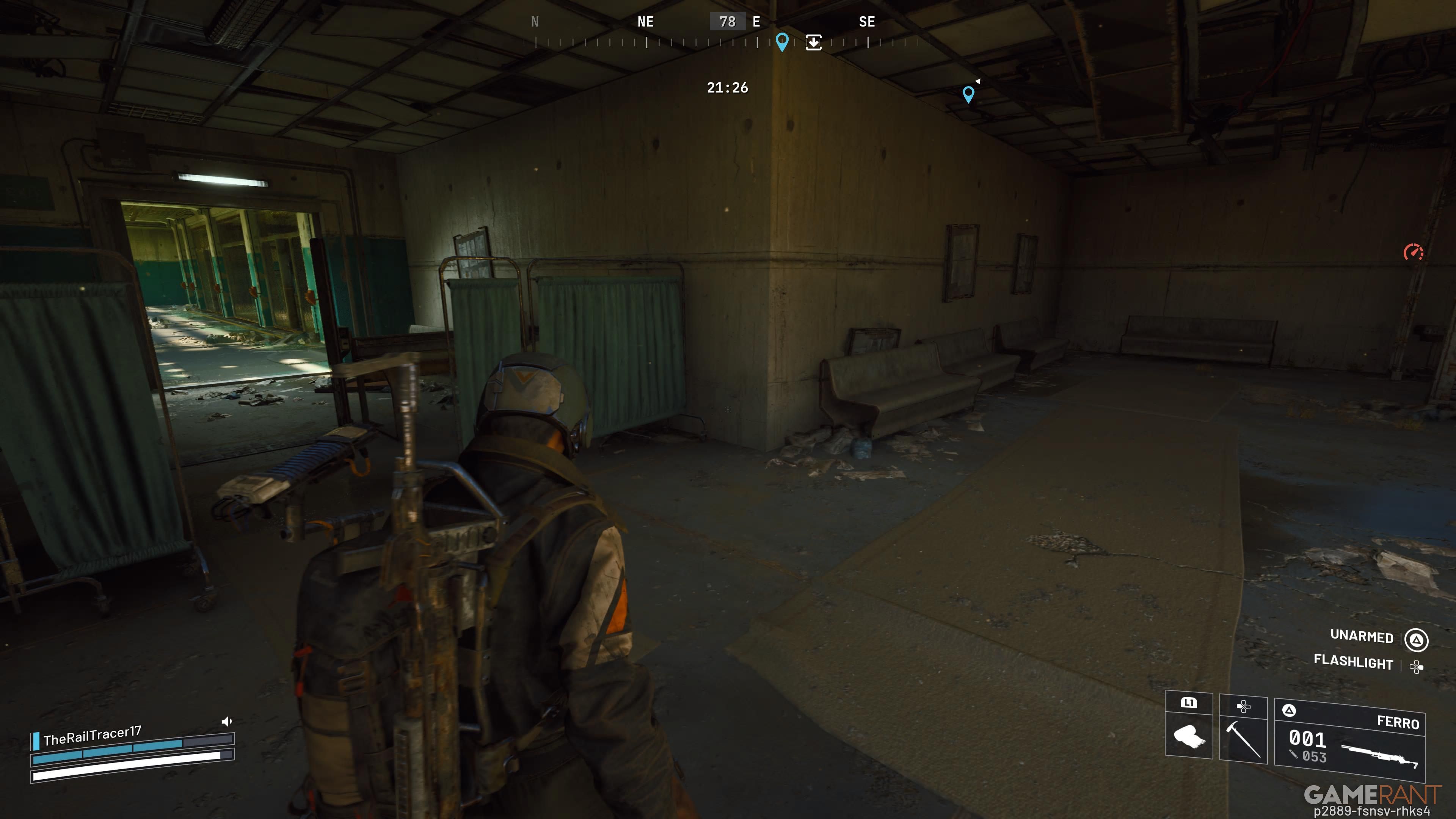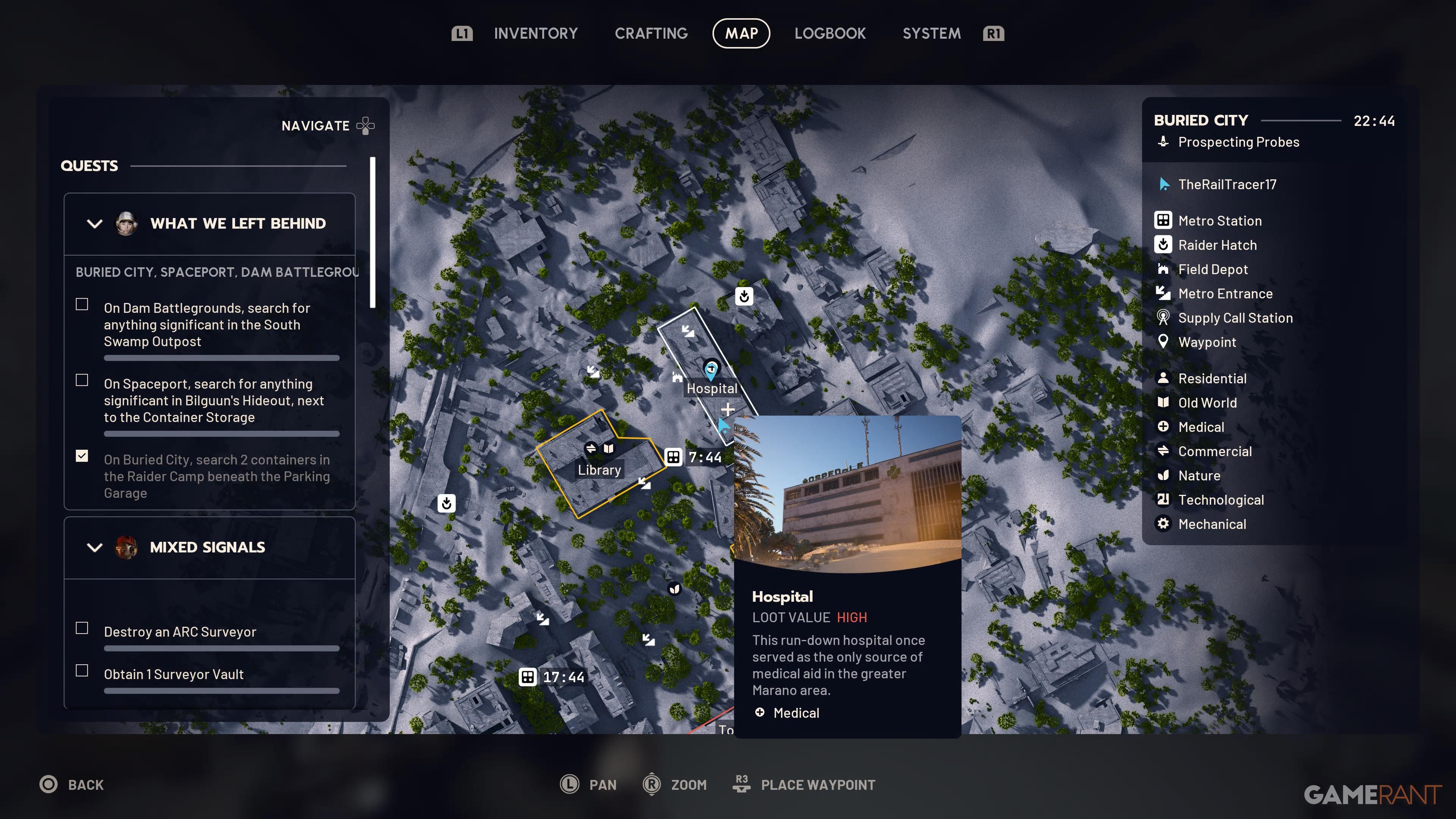 Now, travel to Buried City and go to the Hospital, which is right next to the Parking Garage. The Hospital entrance can be tricky, but the easiest way in is to climb the scaffolding on the outside. Once inside, simply search three containers in any room to finish this step.