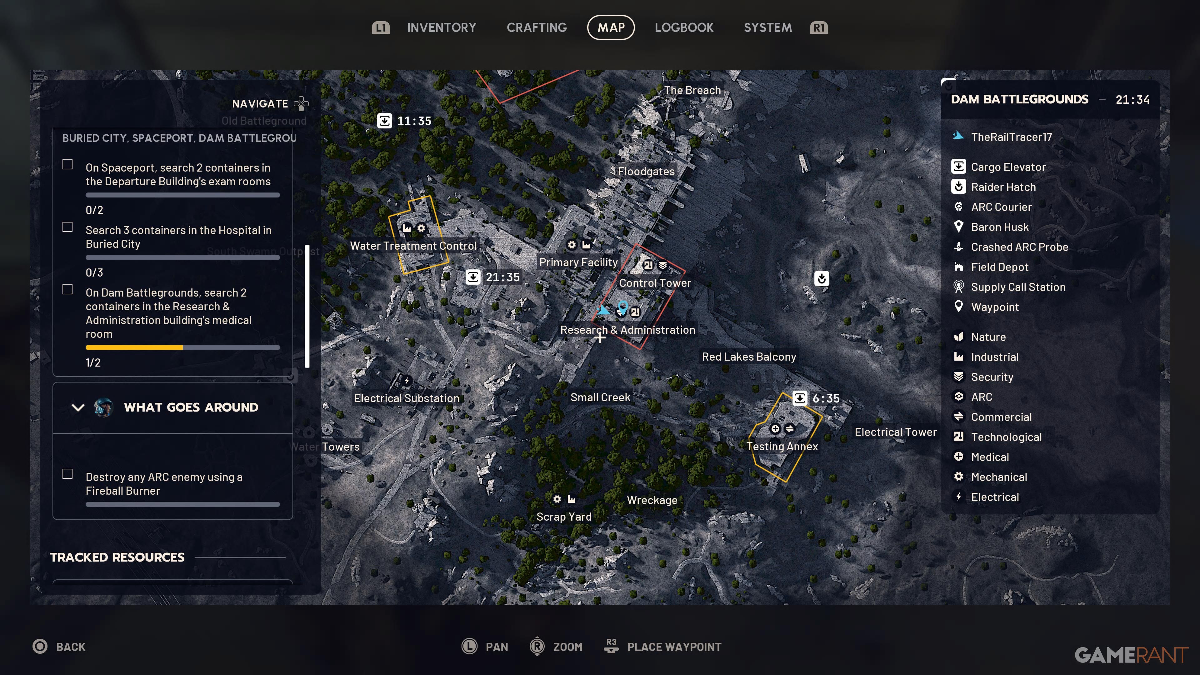 To complete the final task, head to the Damn Battlegrounds. When you arrive, find the Research & Administration building. Enter on the southeast side and climb the blue staircase to the top floor. Watch out for a Sentinel that might be patrolling the walls up there.