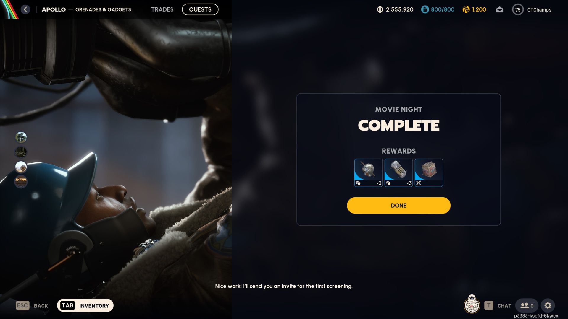 So, I just finished the ‘Movie Night’ quest in ARC Raiders, and Apollo hooked me up with some rare grenades as a reward! Pretty sweet deal, honestly.