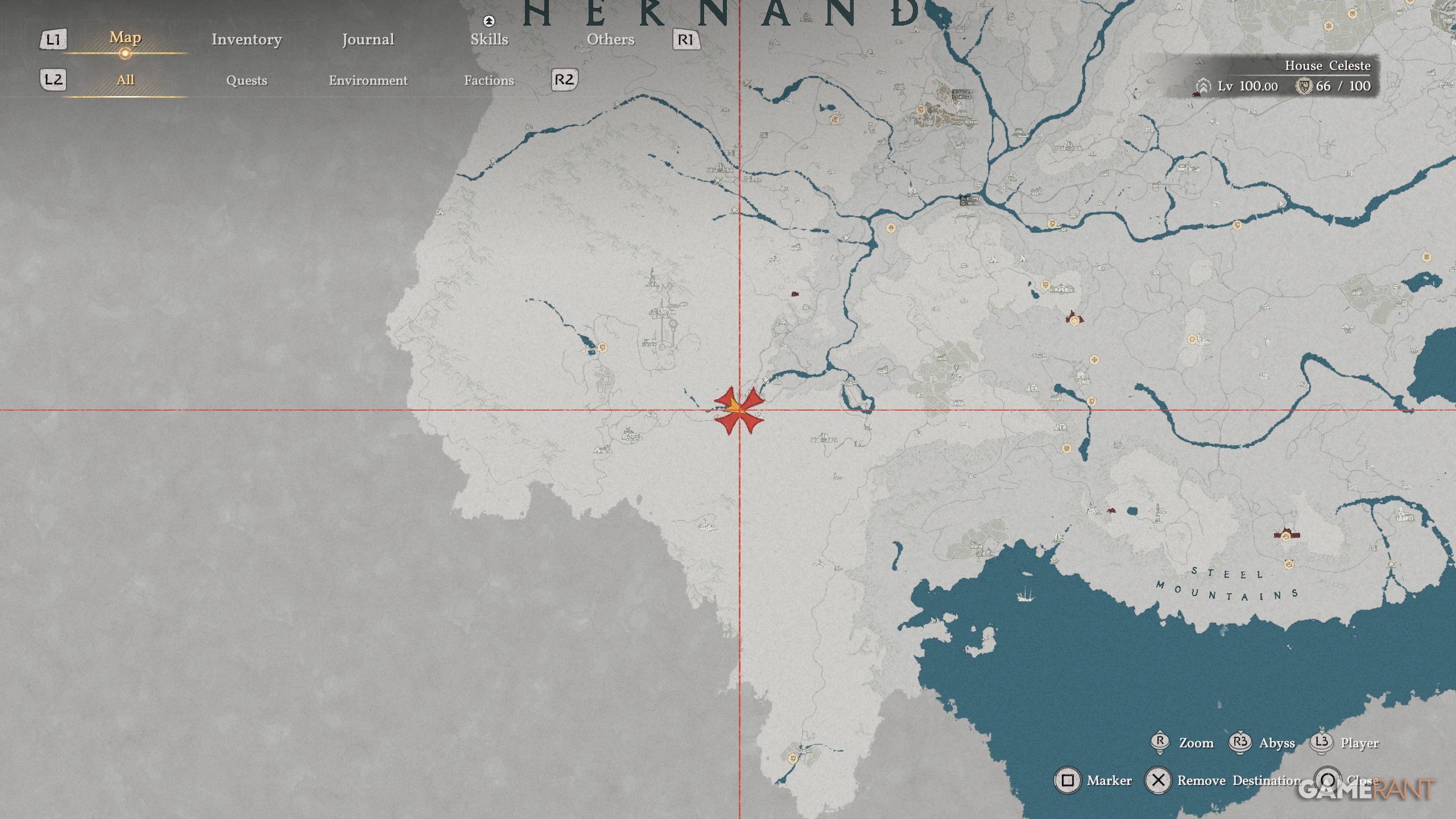 - If the painting doesn’t drop, fast travel to the Ancient Ruins Abyss Nexus (also shown above, and you’ll need to solve the puzzle, which we have a guide for here) and return to Fort Perwin to repeat the cycle.