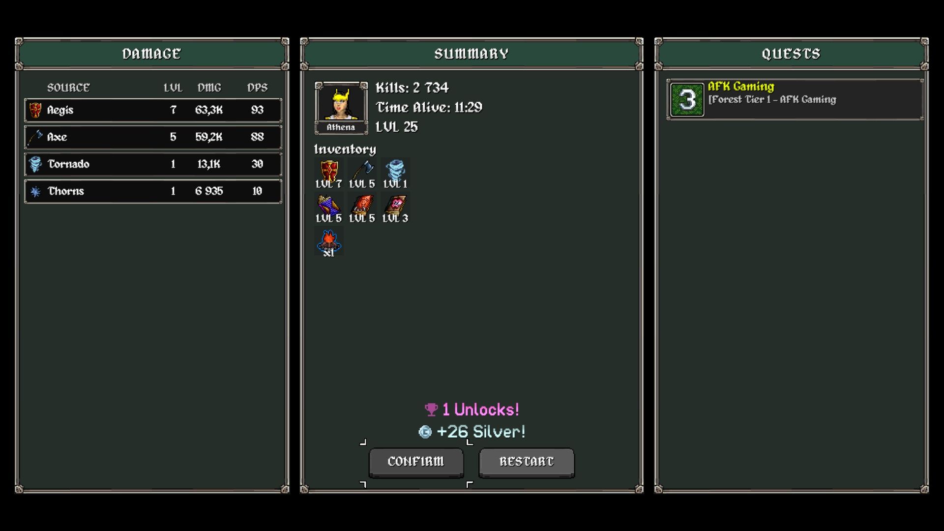 This doesn’t have to be done specifically with Athena, even though she’s the default character. However, she’s ideal for this because her random Blessing gives her Thorns every time she levels up, and also increases her damage output the lower her health gets. This makes surviving the early game easier, even if she takes a lot of damage from monsters.