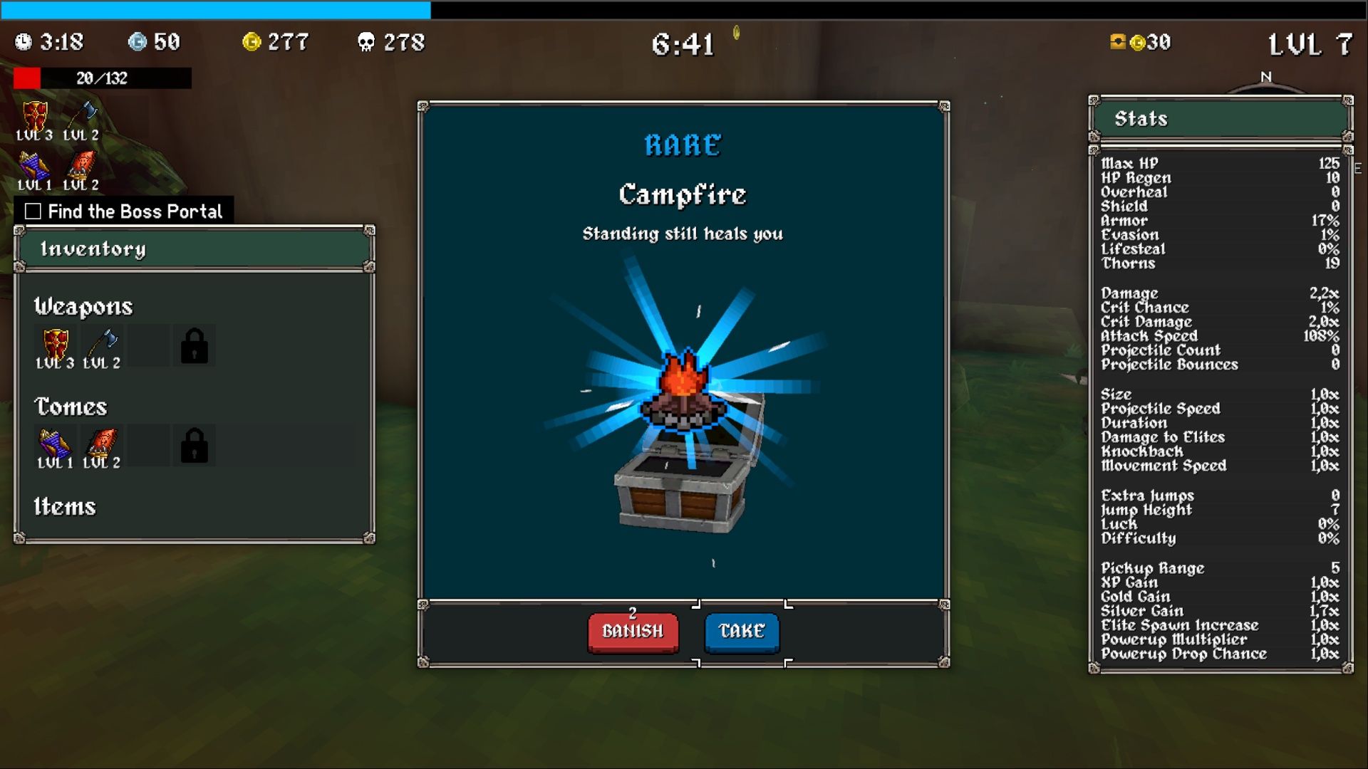 For instance, the Agility Tome is useless during this run because players need to stay stationary, so it’s best to banish it. This also applies to any other items players find or buy – if they’re fortunate enough to reach a Moai Shrine or a chest – that won’t offer any benefits.