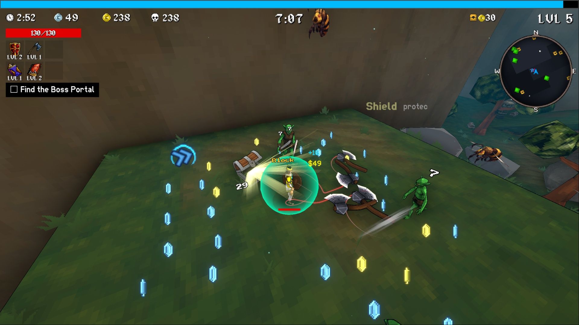 In Forest, players first encounter a small, slowly advancing group of enemies – the types of enemies will vary. Next, they’ll battle a mini-boss, then a larger swarm. After that, enemies begin to arrive at a steady pace. Finally, another swarm appears, culminating in a second mini-boss fight.