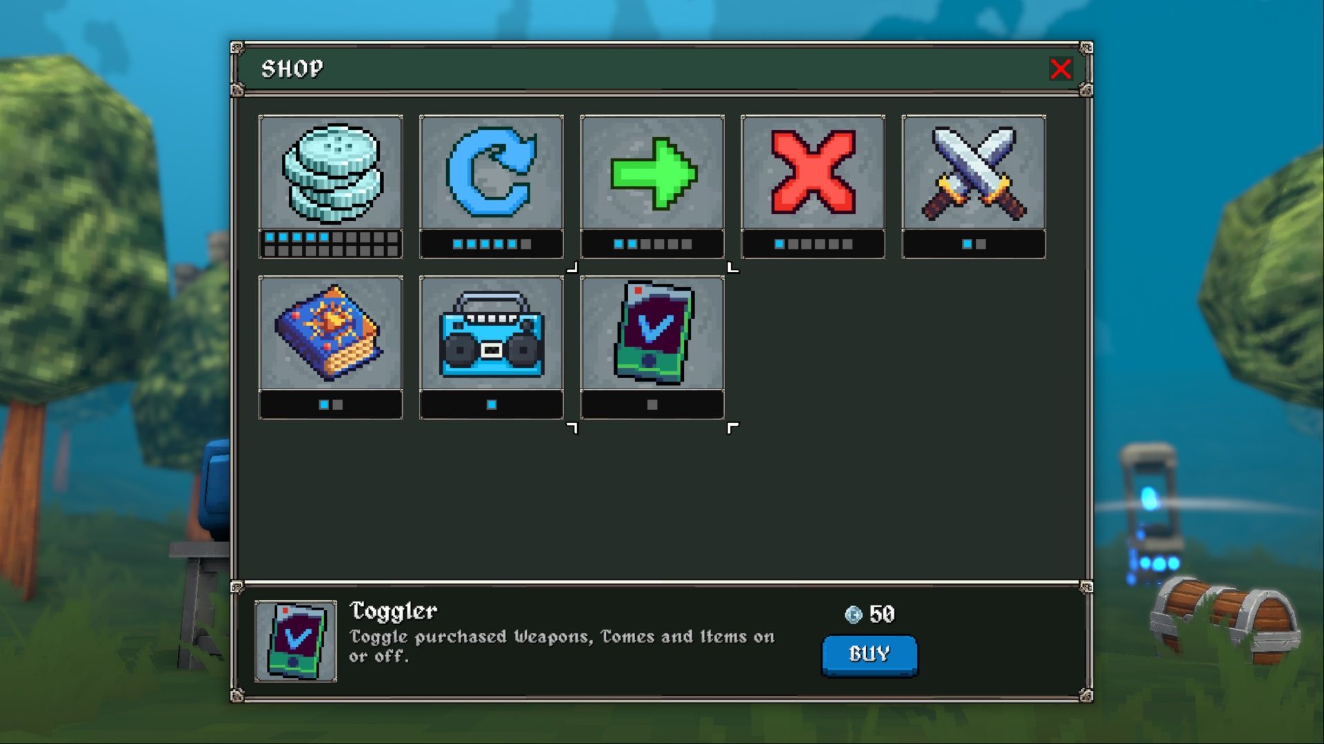 After players buy 40 unlocks in Megabonk, the Toggler becomes available in the Shop. It costs 50 Silver and can be really useful for players aiming to get particular items during a run. The Toggler lets players go to the Unlocks screen and turn off any weapons, tomes, and items they’ve already purchased.